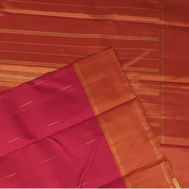This Kanchipuram silk saree in a deep wine red shade is a masterpiece of elegance. Perfectly crafted with intricate traditional patterns, it is ideal for weddings, festive occasions, and grand celebrations.