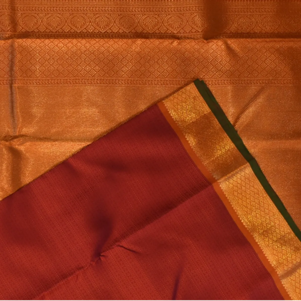 This Kanchipuram silk saree in a maroon shade is a masterpiece of elegance. Perfectly crafted with intricate traditional patterns, it is ideal for weddings, festive occasions, and grand celebrations.
