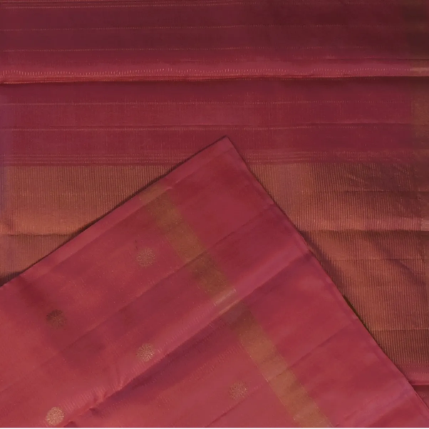 This Kanchipuram silk saree in a mauve shade is a masterpiece of elegance. Perfectly crafted with intricate traditional patterns, it is ideal for weddings, festive occasions, and grand celebrations.