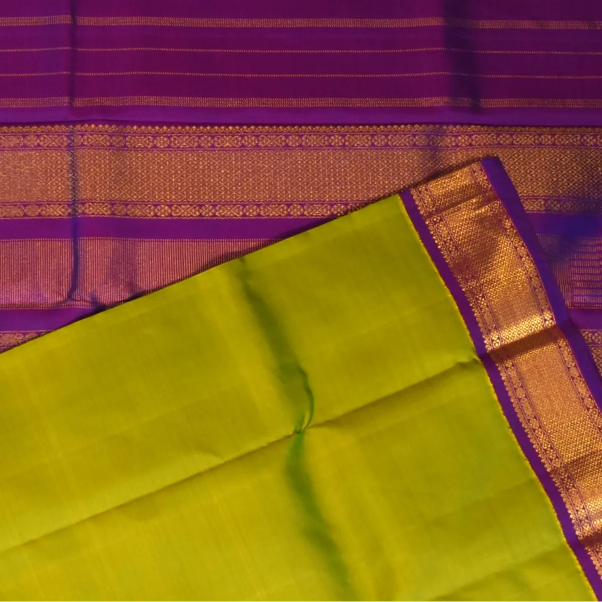 This Kanchipuram silk saree in a mustard green shade is a masterpiece of elegance. Perfectly crafted with intricate traditional patterns, it is ideal for weddings, festive occasions, and grand celebrations.
