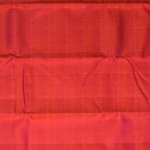 This Kanchipuram silk saree in a raspberry red shade is a masterpiece of elegance. Perfectly crafted with intricate traditional patterns, it is ideal for weddings, festive occasions, and grand celebrations.