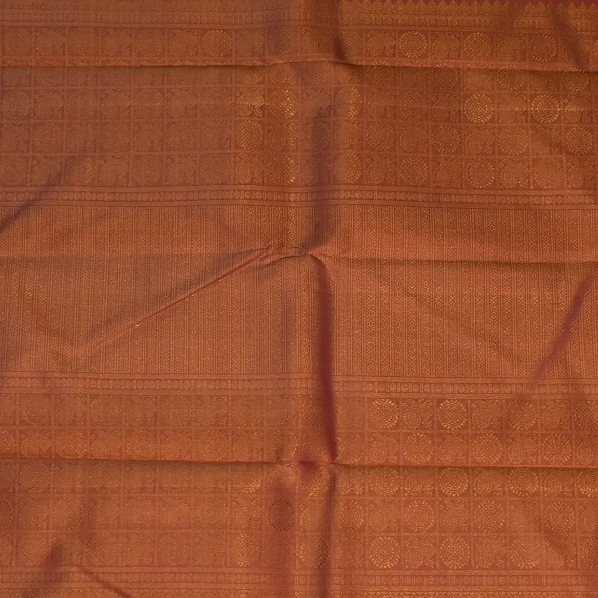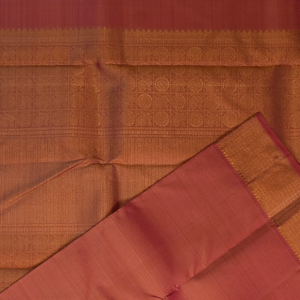 This Kanchipuram silk saree in a rosewood shade is a masterpiece of elegance. Perfectly crafted with intricate traditional patterns, it is ideal for weddings, festive occasions, and grand celebrations.