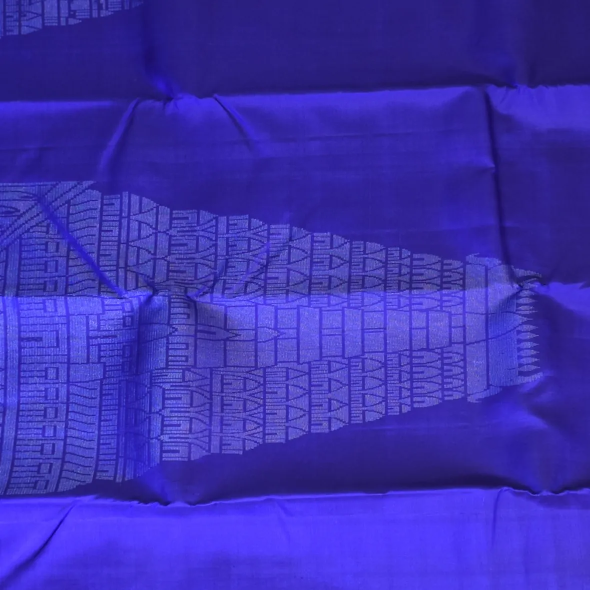 This Kanchipuram silk saree in a royal blue shade is a masterpiece of elegance. Perfectly crafted with intricate traditional patterns, it is ideal for weddings, festive occasions, and grand celebrations.
