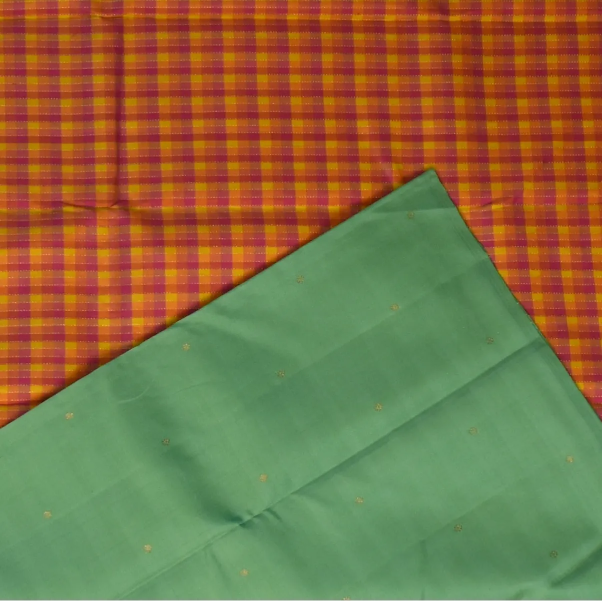 This Kanchipuram silk saree in a sea green shade is a masterpiece of elegance. Perfectly crafted with intricate traditional patterns, it is ideal for weddings, festive occasions, and grand celebrations.