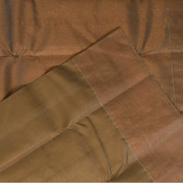 This Kanchipuram silk saree in a taupe shade is a masterpiece of elegance. Perfectly crafted with intricate traditional patterns, it is ideal for weddings, festive occasions, and grand celebrations.