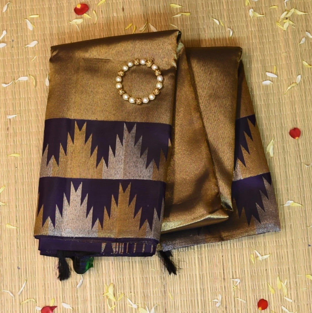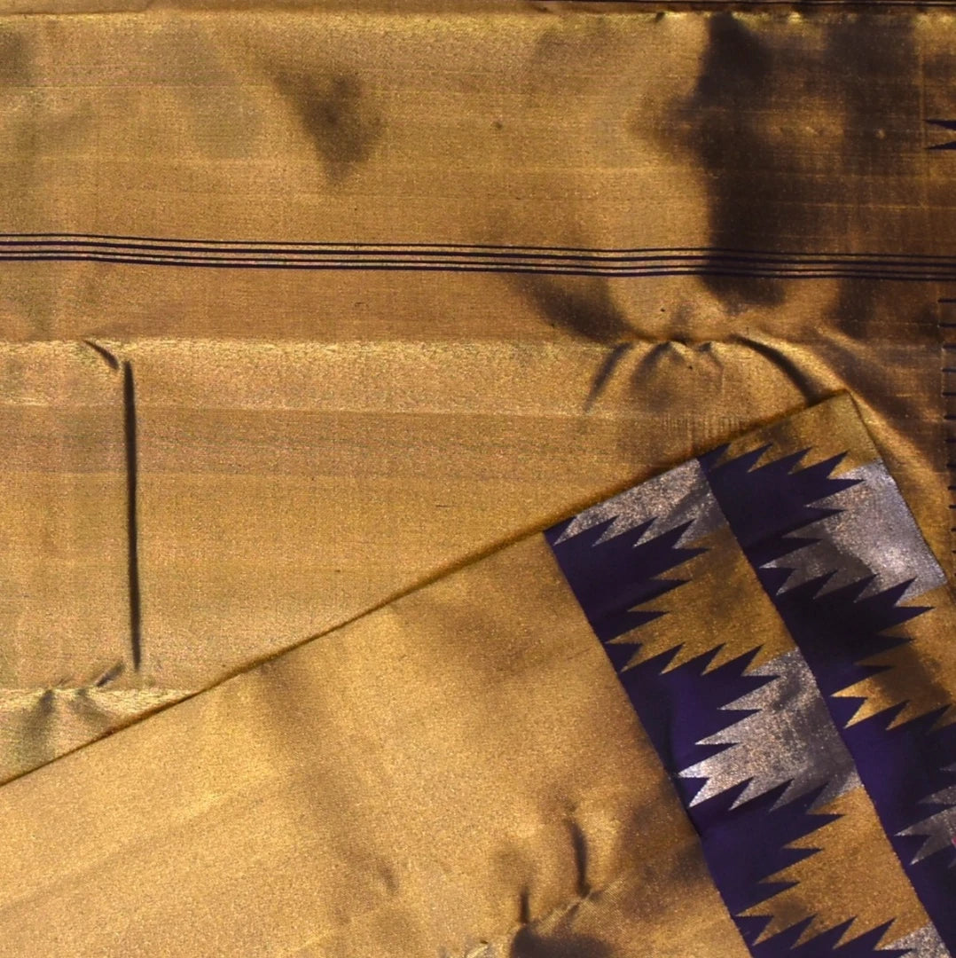 This kanchivaram golden saree with gold & silver jari boarder with blouse is a stunning piece with elegant details that elevate your traditional look. Perfect for celebrations, weddings, or festive wear.
