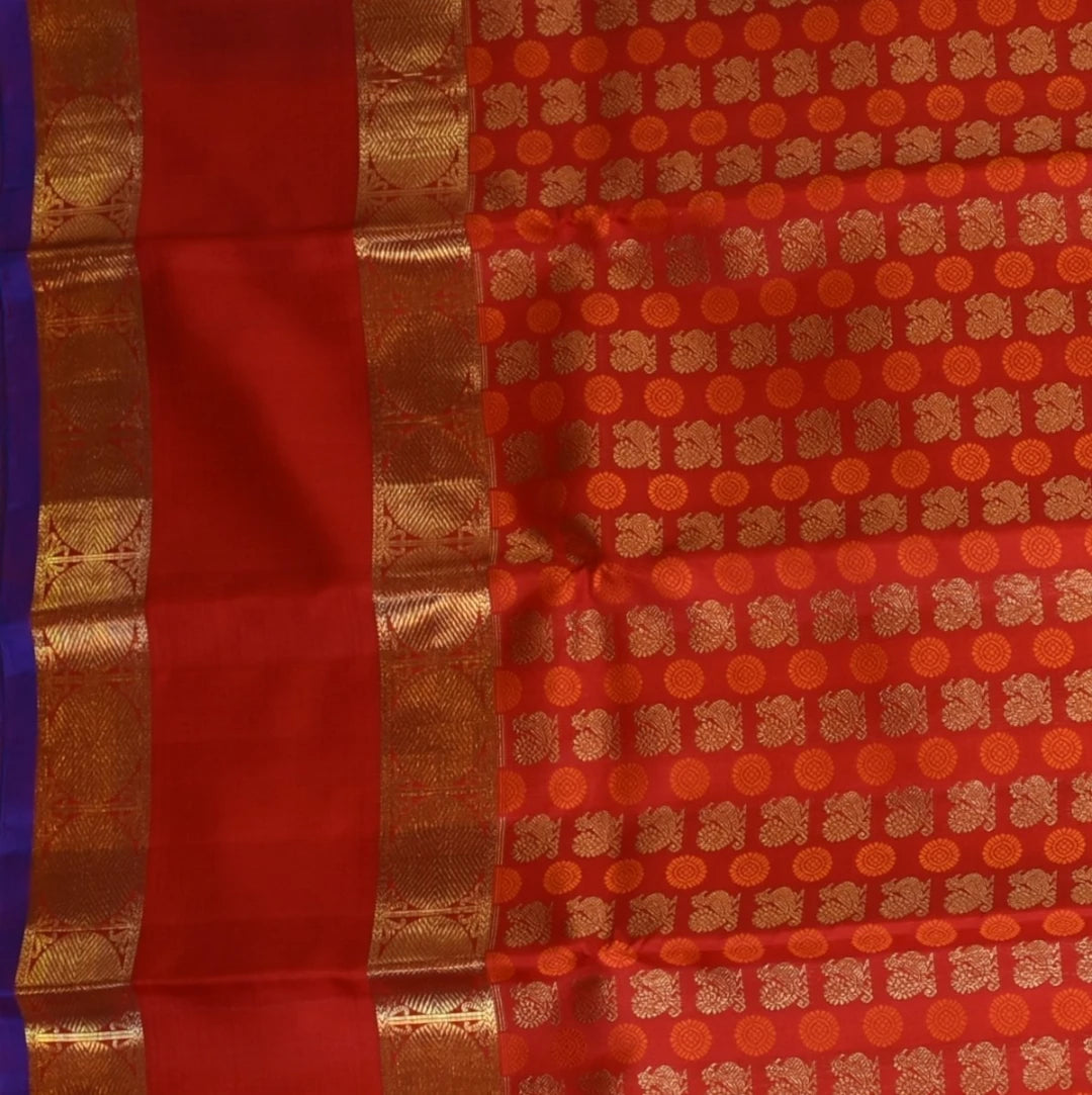 This kanchivaram red saree with jari boarder with blouse is a stunning piece with elegant details that elevate your traditional look. Perfect for celebrations, weddings, or festive wear.