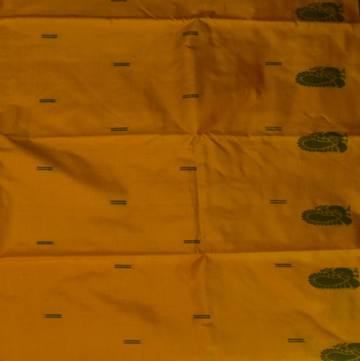 This Kanchivaram silk saree in a bronze orange shade exudes grace and sophistication. Designed with intricate traditional motifs, it is perfect for weddings, festive celebrations, and cultural events.