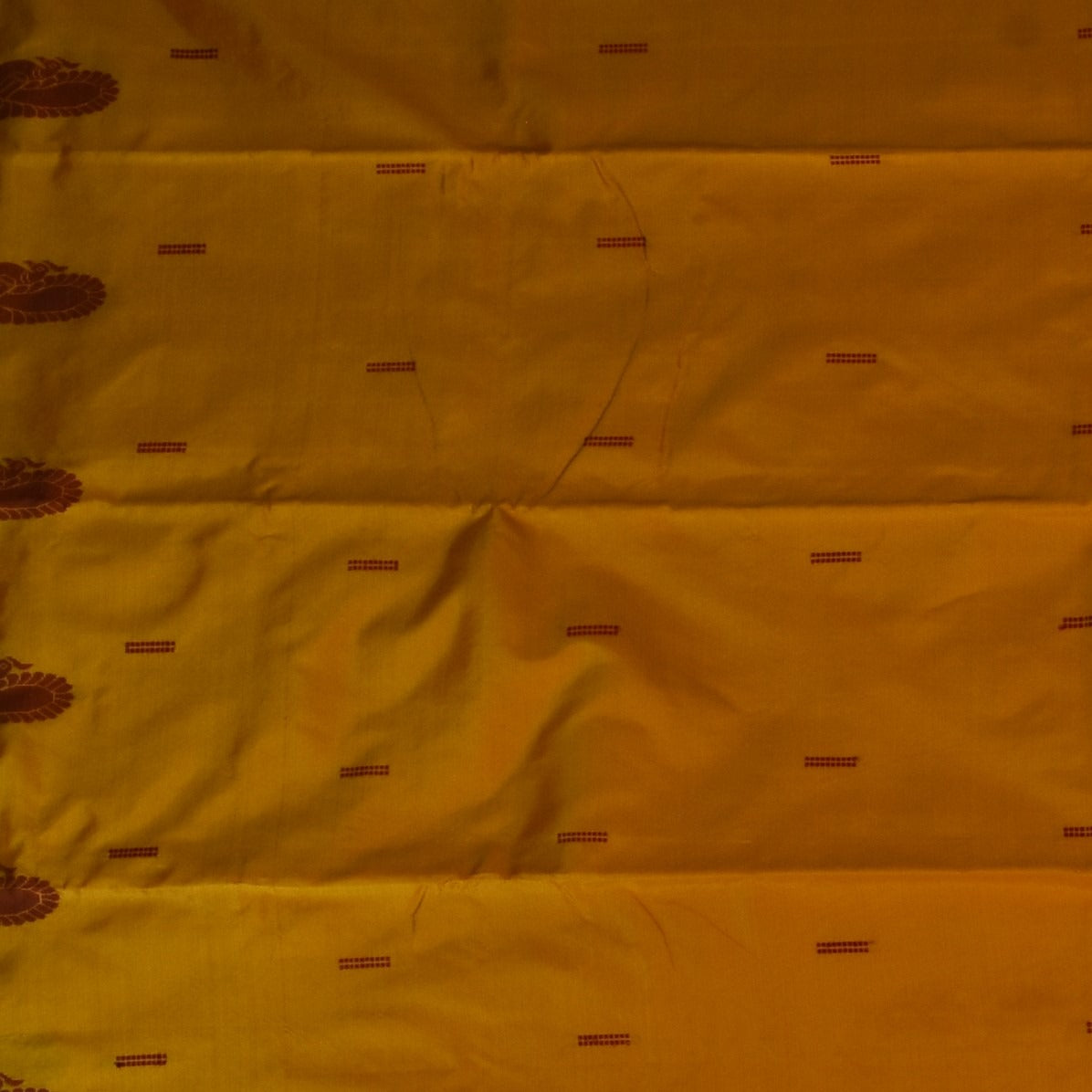 This Kanchivaram silk saree in a toffee brown shade exudes grace and sophistication. Designed with intricate traditional motifs, it is perfect for weddings, festive celebrations, and cultural events.