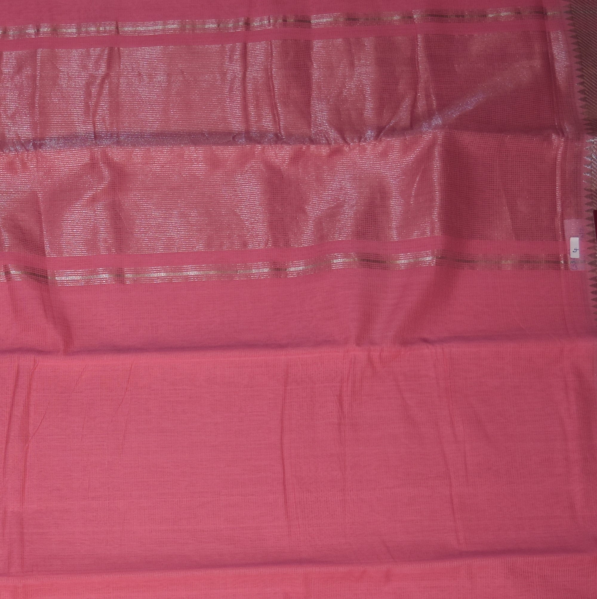 Mangalagiri Pure Cotton Rose pink saree with silver jari boarder