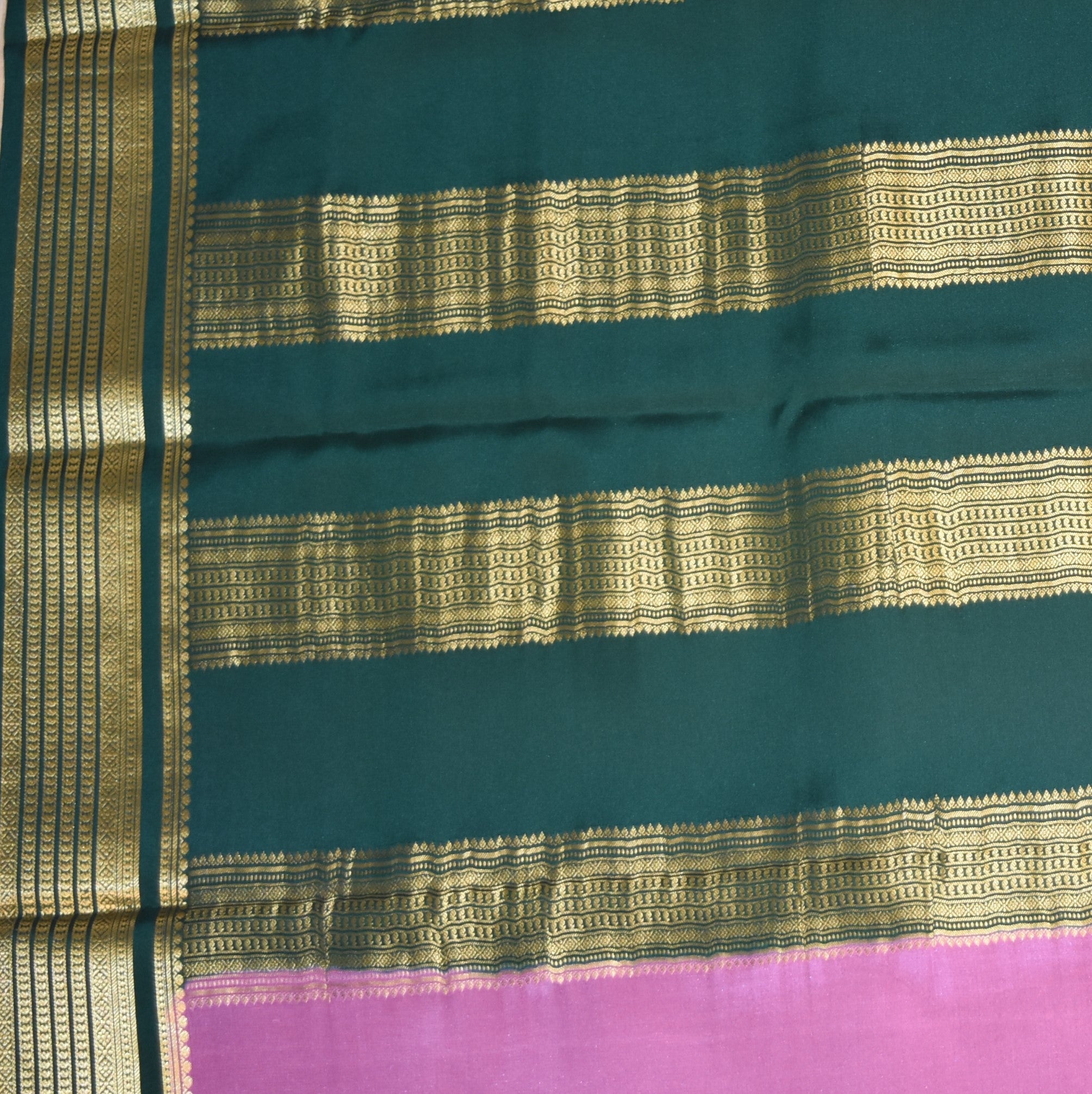 experience timeless elegance with this luxurious mysore crepe silk saree, a symbol of royal heritage and refined craftmanship. woven from premium pure silk, this saree is known for its smooth texture, natural sheen and feather- light comfort that drapes effortlessly. the soft crepe weave gives the saree a graceful fall. making it perfect for a long festive occasions.