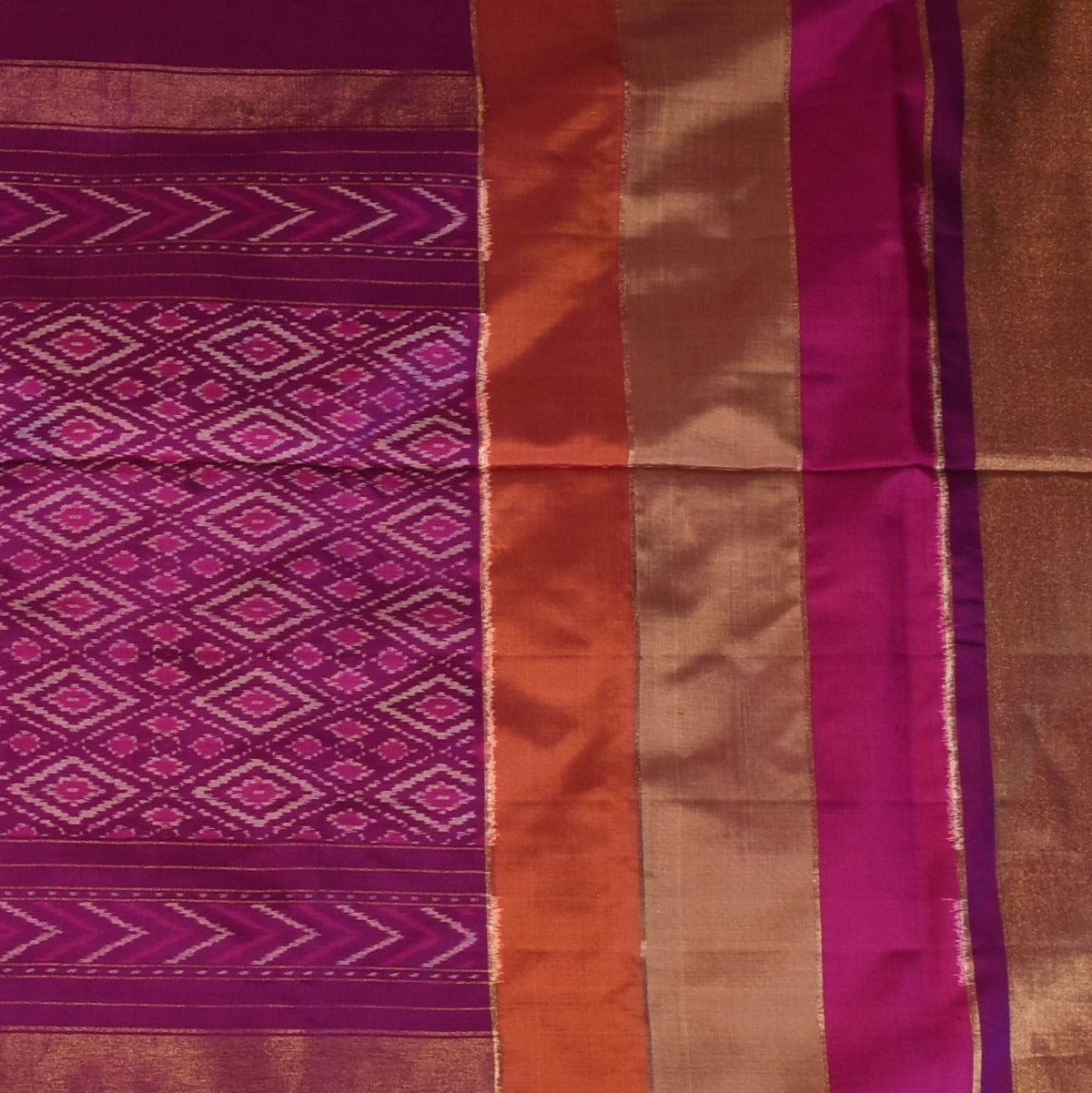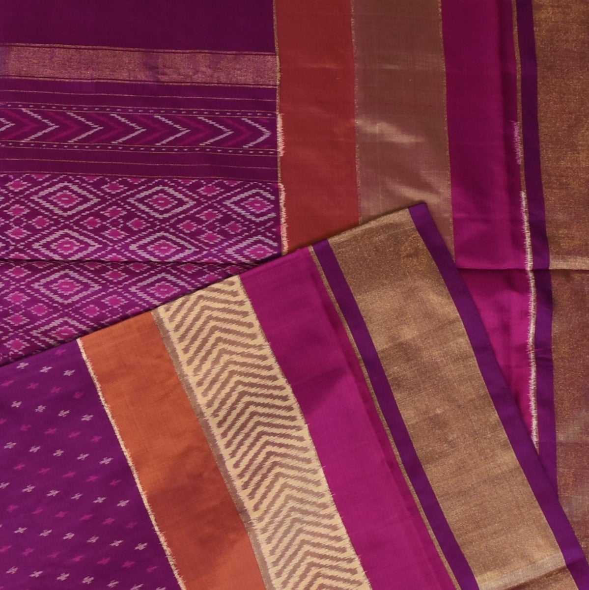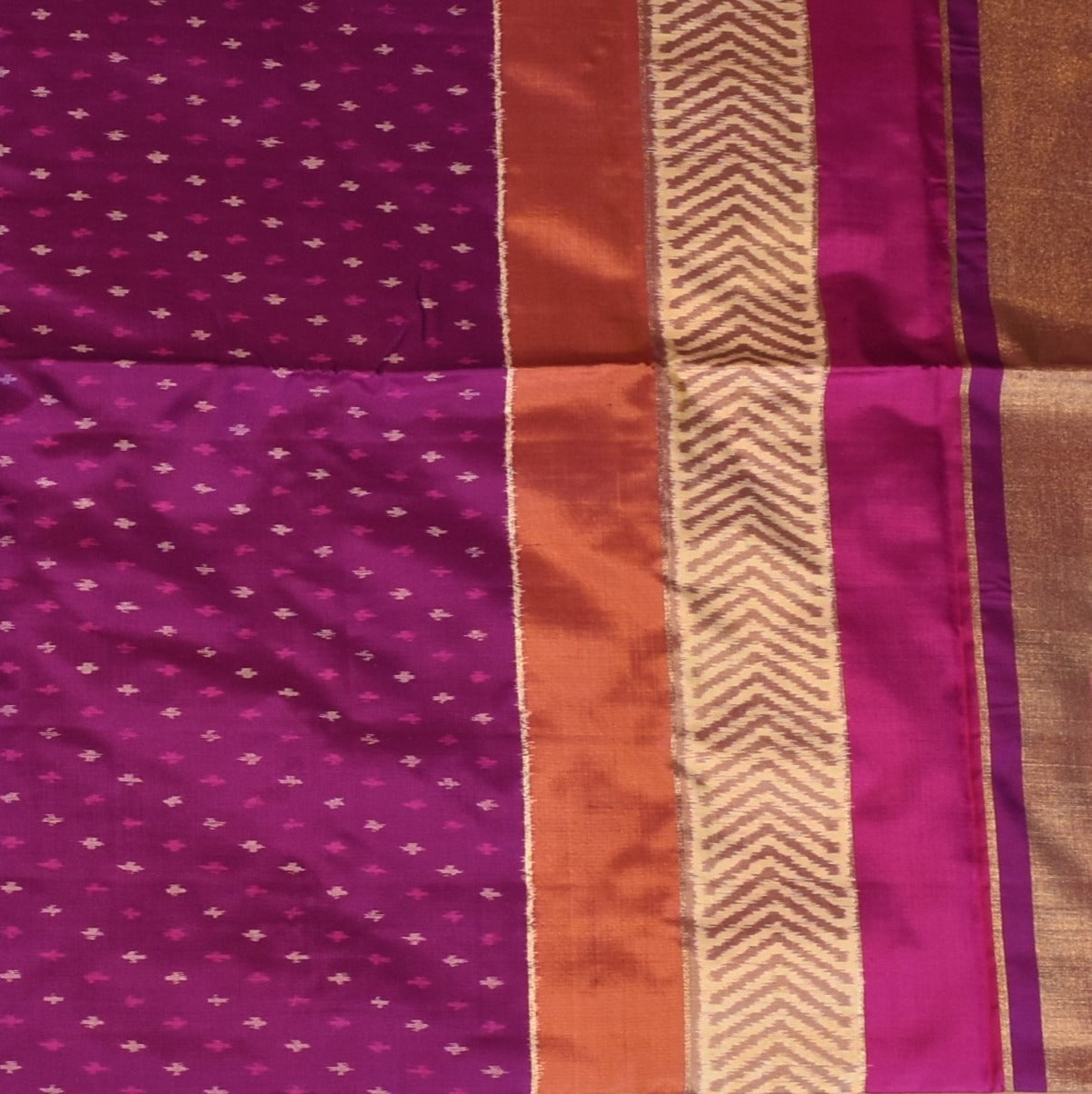 Pochampally Ikkat Purple Saree with Gold Zari Border and Blouse
