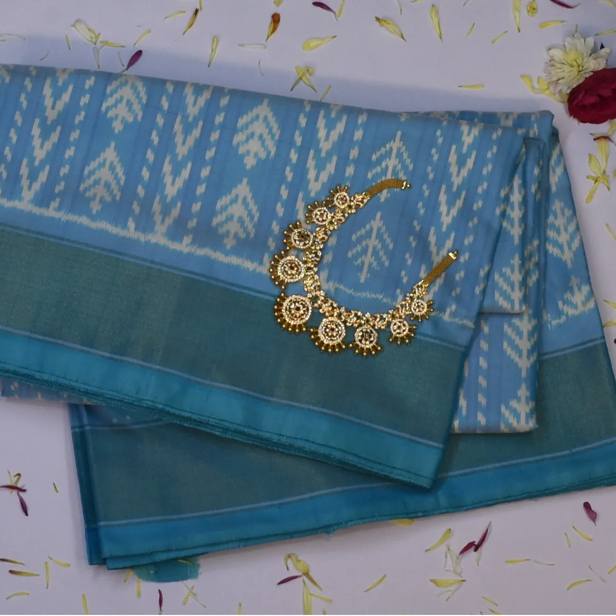 Pochampally Ikkat Sky Blue Saree with Zari Border and Blouse