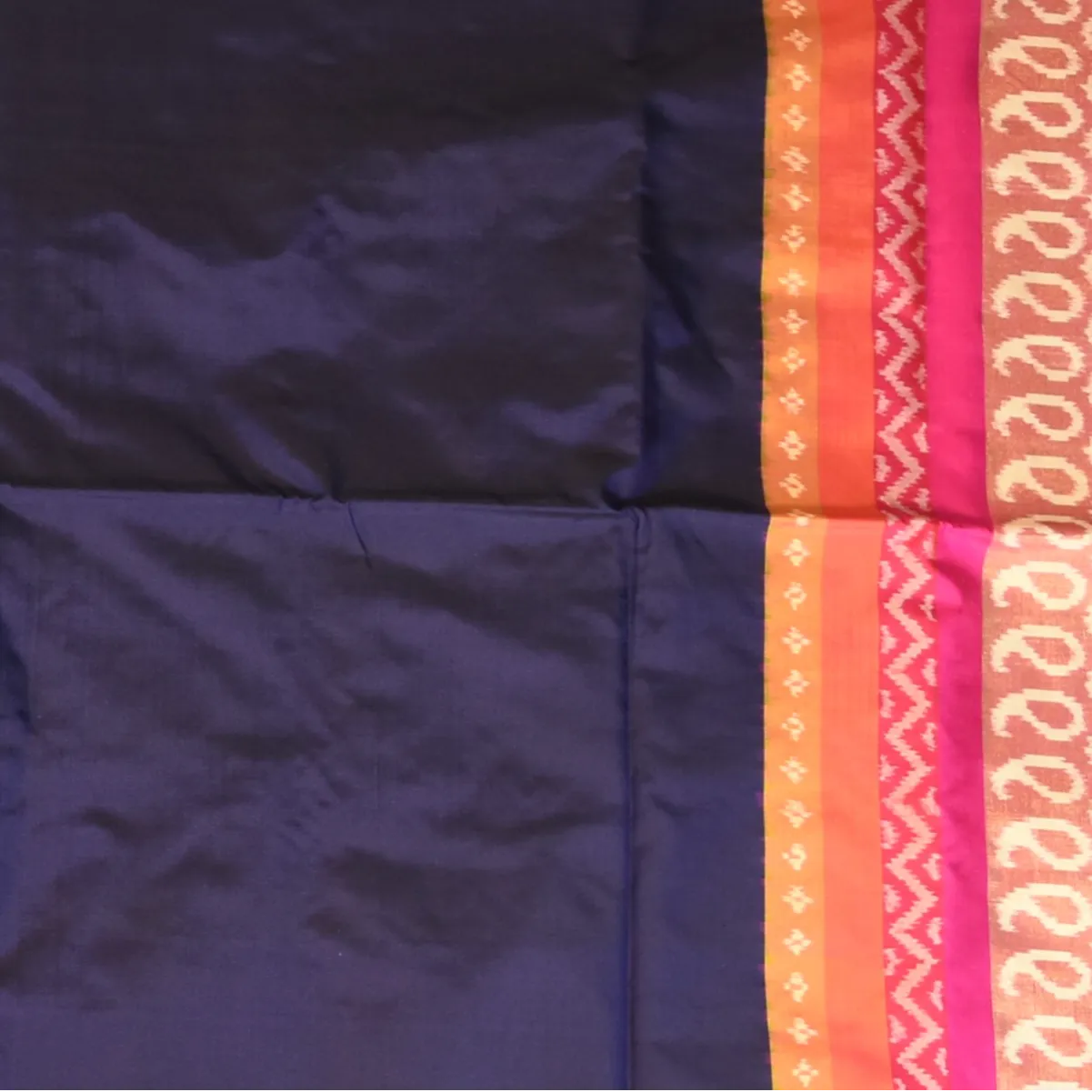 Pochampally Ikkat Navy Blue Saree with Multi-Layered Paisley Design Border and Blouse