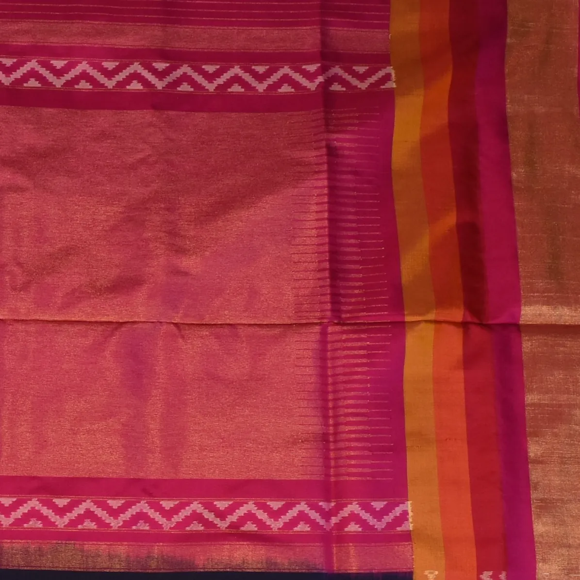 This Pochampally ikkat saree in a navy blue shade is a perfect blend of tradition and elegance. Its intricate patterns make it an ideal choice for festive occasions, weddings, and cultural events.