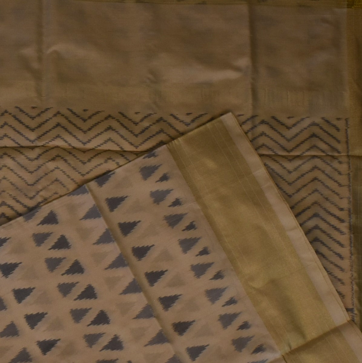 This Pochampally ikkat saree in a taupe gray shade exudes grace and sophistication. Designed with intricate traditional motifs, it is perfect for weddings, festive celebrations, and cultural events.