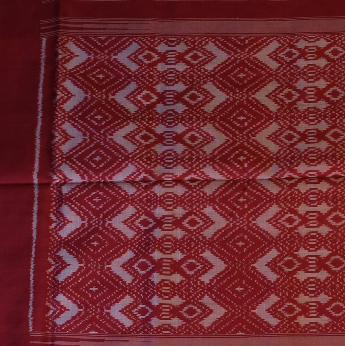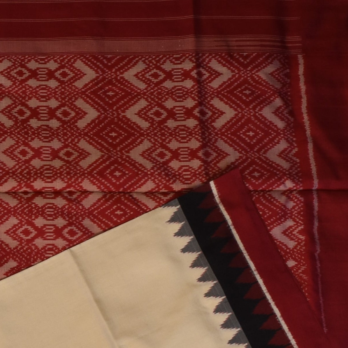 This Pochampally ikkat saree in a ivory shade exudes grace and sophistication. Designed with intricate traditional motifs, it is perfect for weddings, festive celebrations, and cultural events.