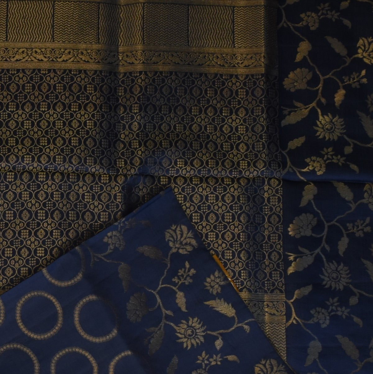 This Pure silk saree in a indigo blue shade exudes grace and sophistication. Designed with intricate traditional motifs, it is perfect for weddings, festive celebrations, and cultural events.