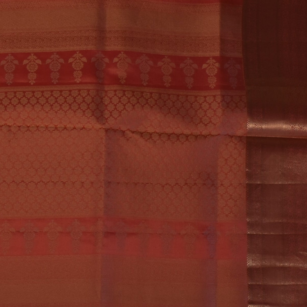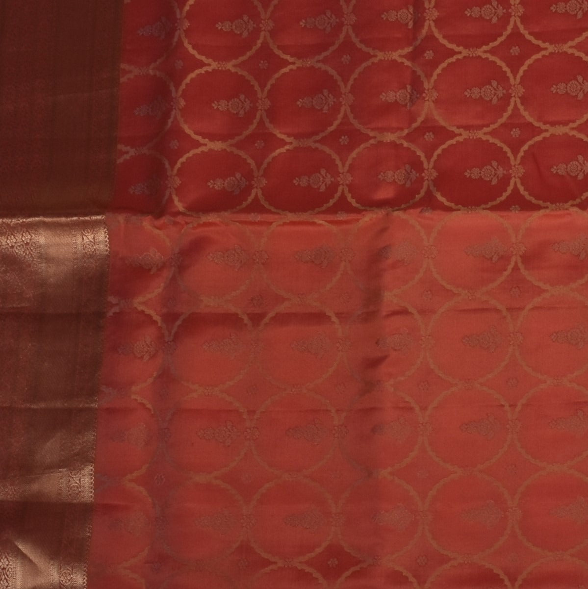 This Pure silk saree in a scarlet red shade exudes grace and sophistication. Designed with intricate traditional motifs, it is perfect for weddings, festive celebrations, and cultural events.