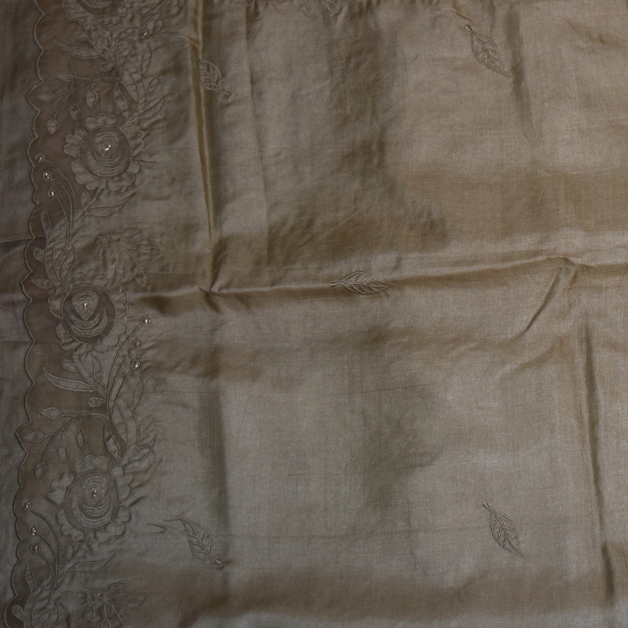 Pure Tussar mehandi green thread work boarder