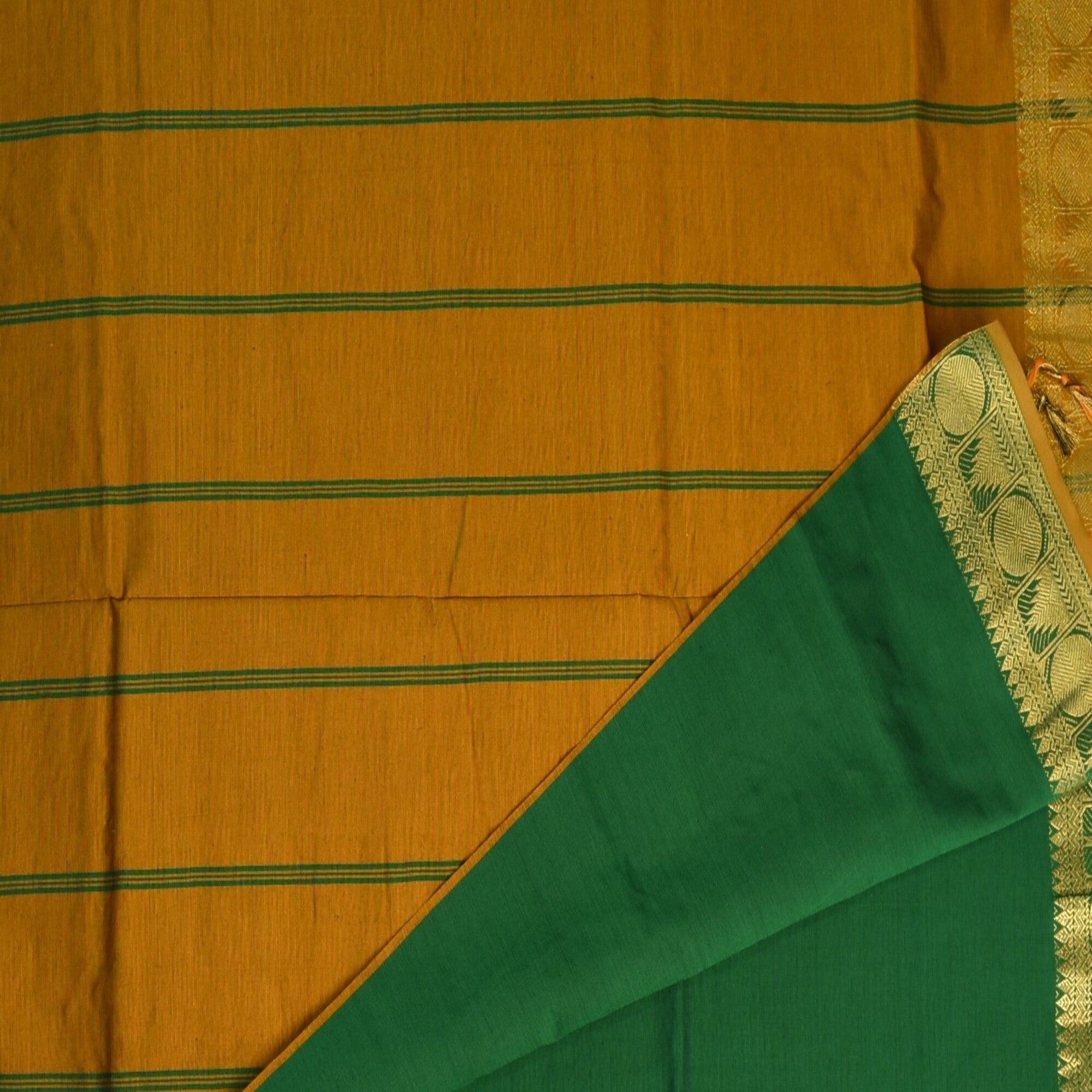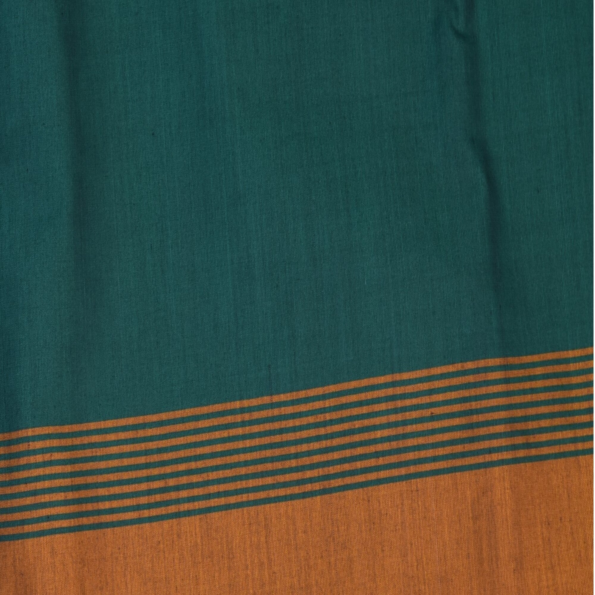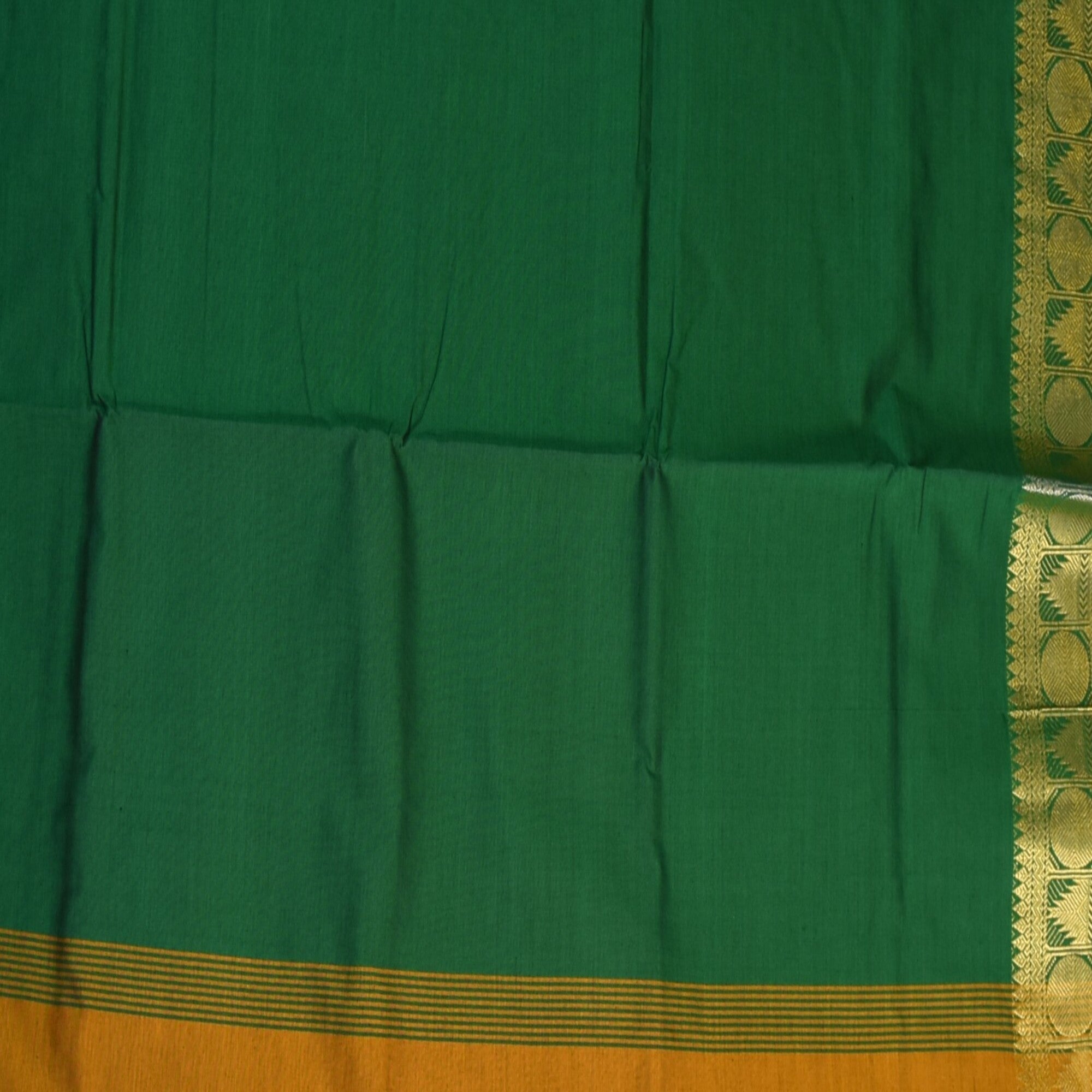 This semi cotton bottle green saree with jari boarder. The fabric breathes effortlessly while retaining a regal texture. This is perfect for pujas, casual wear and graceful day wear.