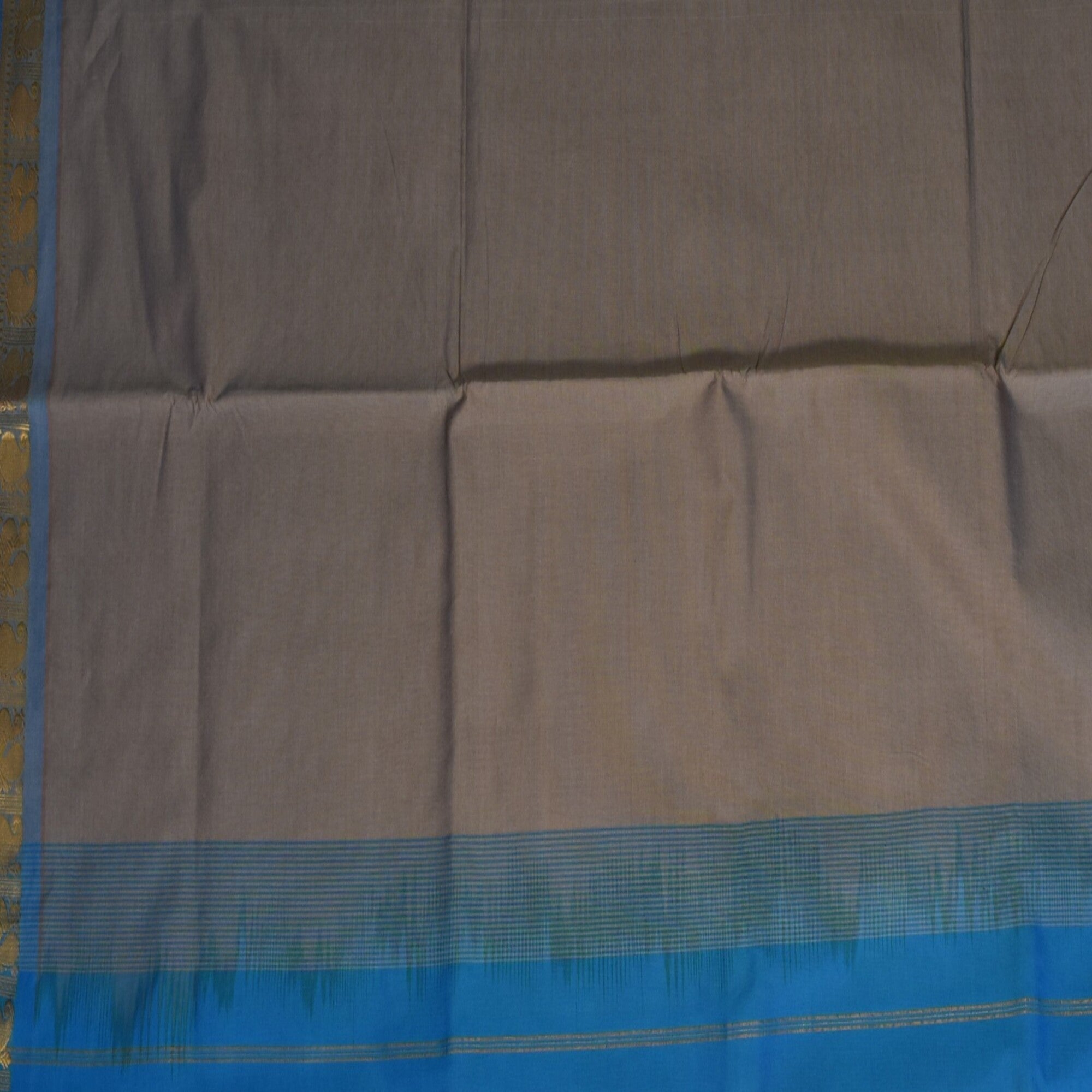 This semi cotton Gray Saree with Gold Jari boarder. The fabric breathes effortlessly while retaining a regal texture. This is perfect for pujas, casual wear and graceful day wear.