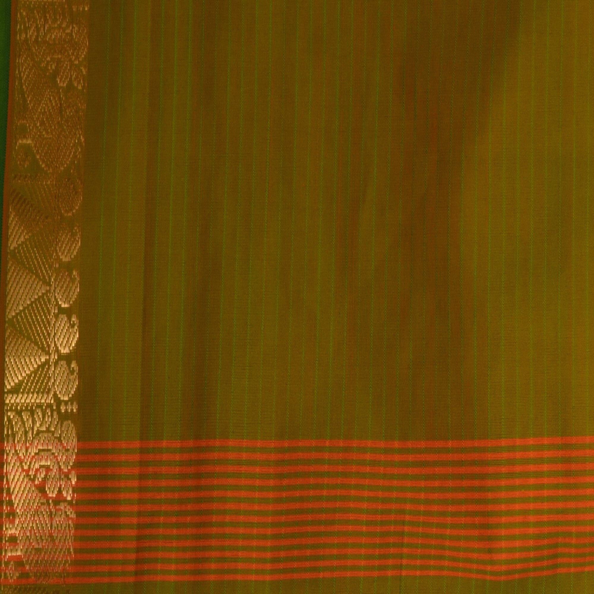 This semi cotton short green saree with green boarder . The fabric breathes effortlessly while retaining a regal texture. This is perfect for pujas, casual wear and graceful day wear.