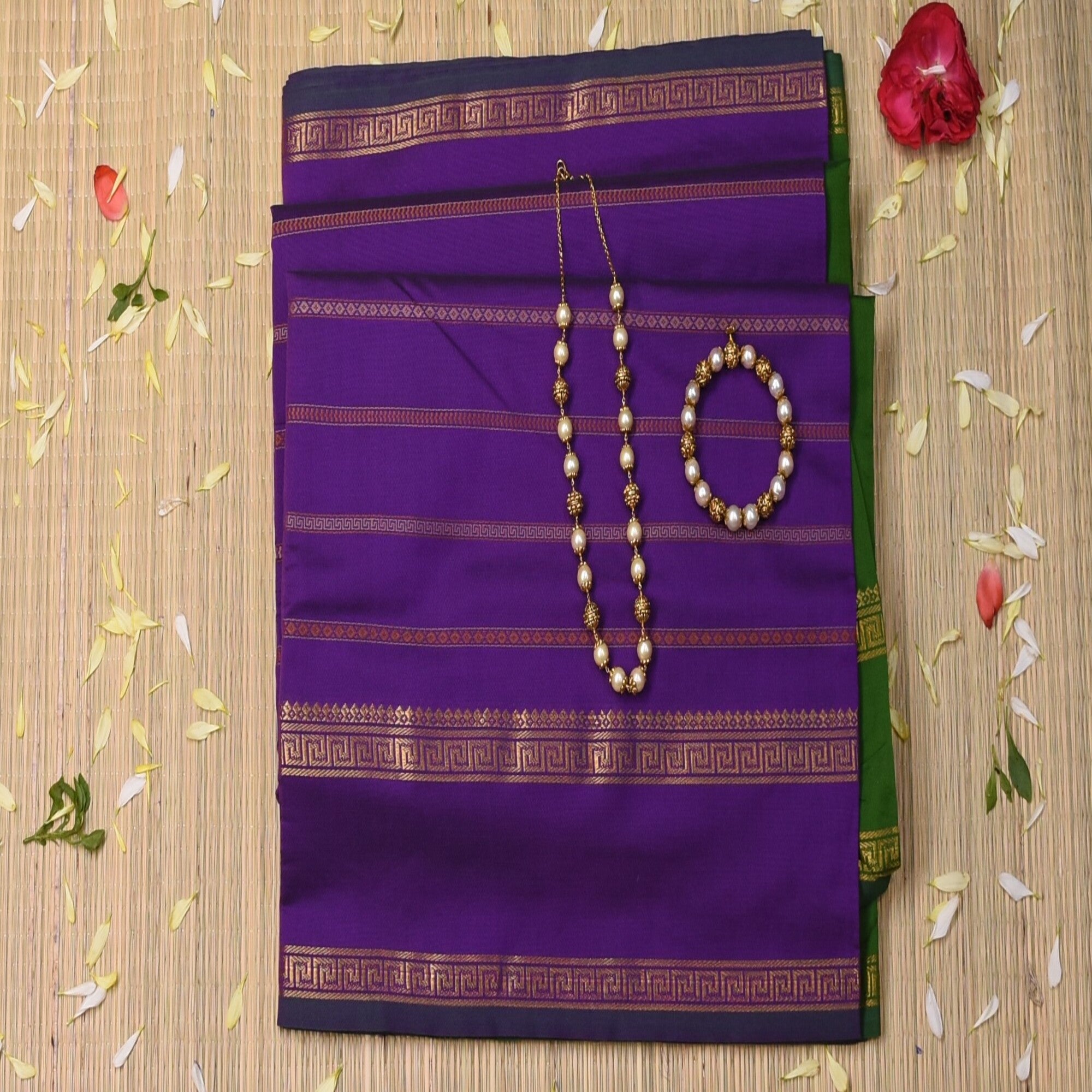 This semi cotton violet saree with gap boarder. The fabric breathes effortlessly while retaining a regal texture. This is perfect for pujas, casual wear and graceful day wear.