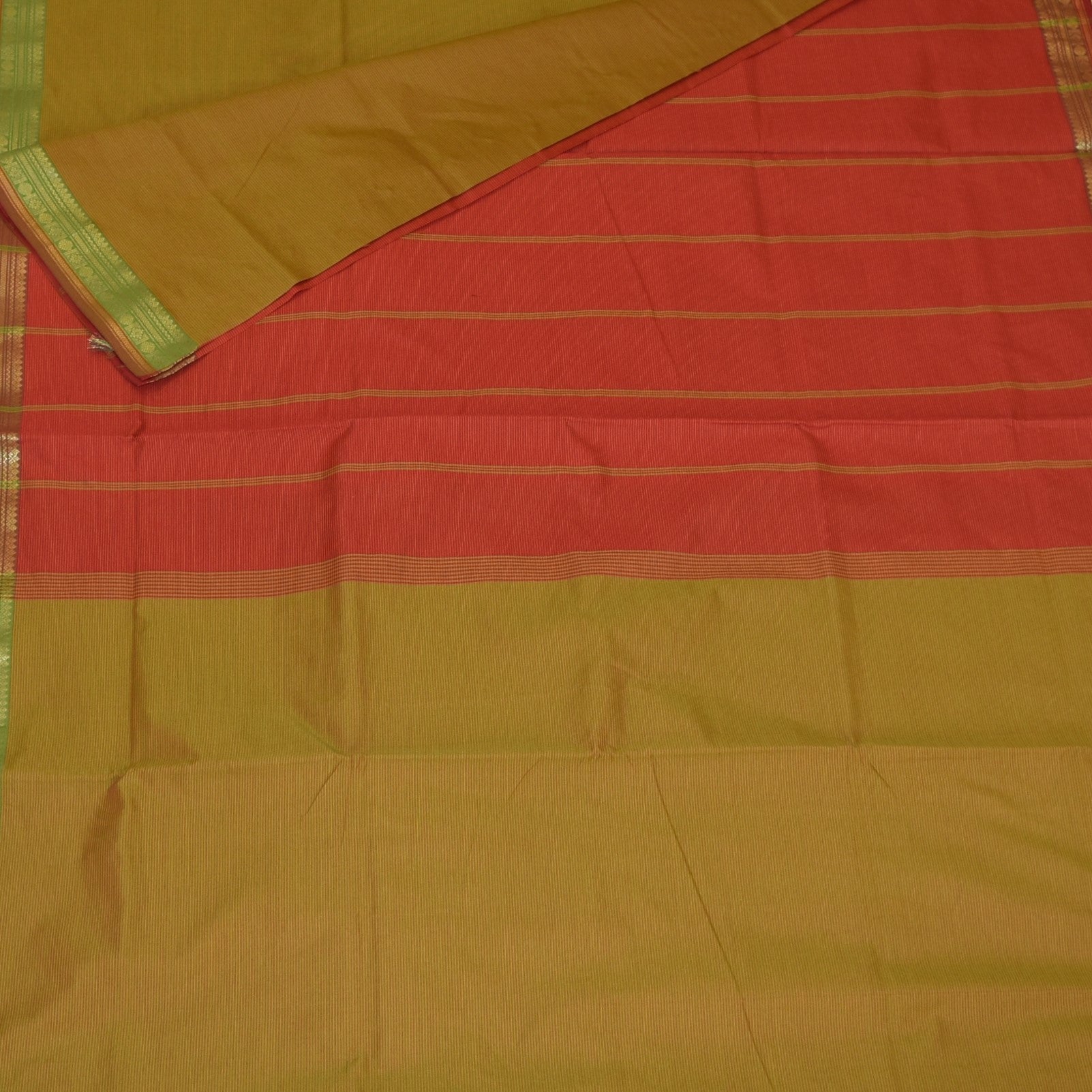 This semi silk cotton green saree with Jari boarder. The fabric breathes effortlessly while retaining a regal texture. This is perfect for pujas, casual wear and graceful day wear.