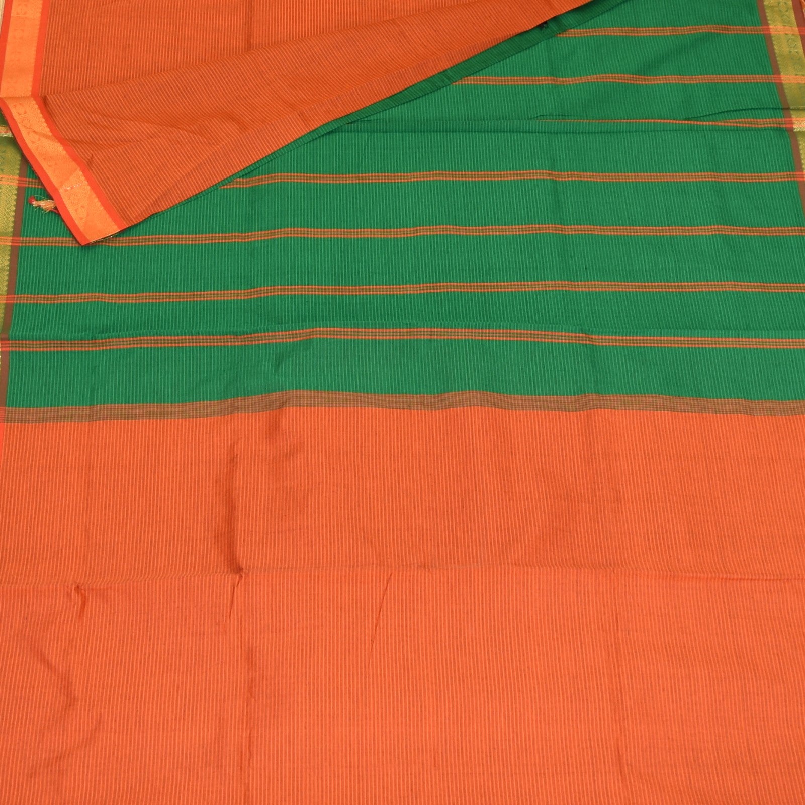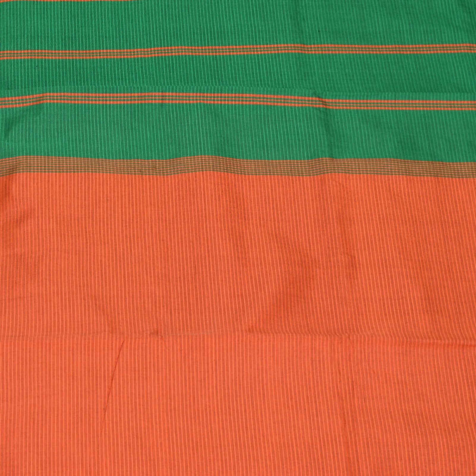 This semi silk cotton orange saree with Jari boarder. The fabric breathes effortlessly while retaining a regal texture. This is perfect for pujas, casual wear and graceful day wear.