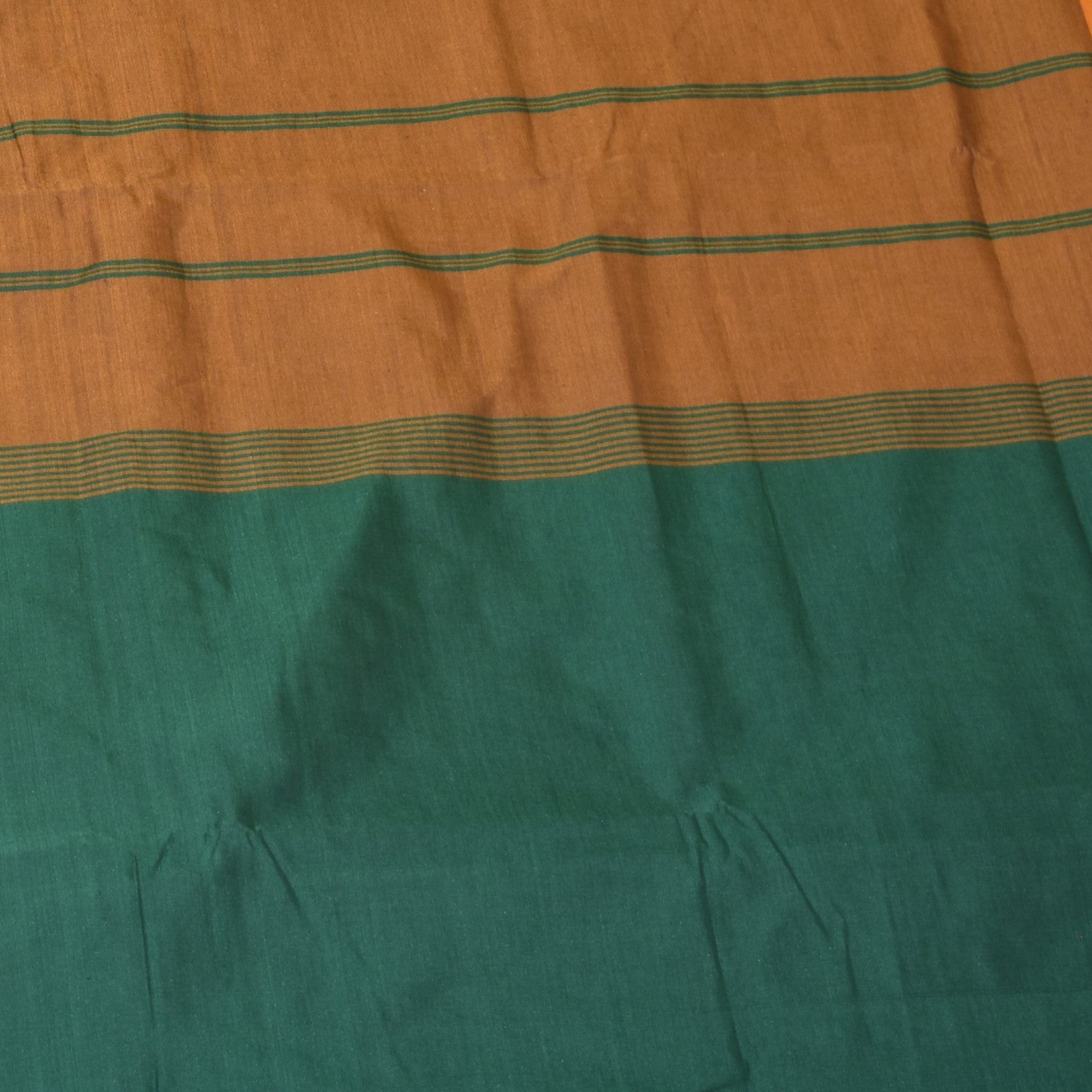 This semi silk cotton rama green saree with Jari boarder. The fabric breathes effortlessly while retaining a regal texture. This is perfect for pujas, casual wear and graceful day wear.