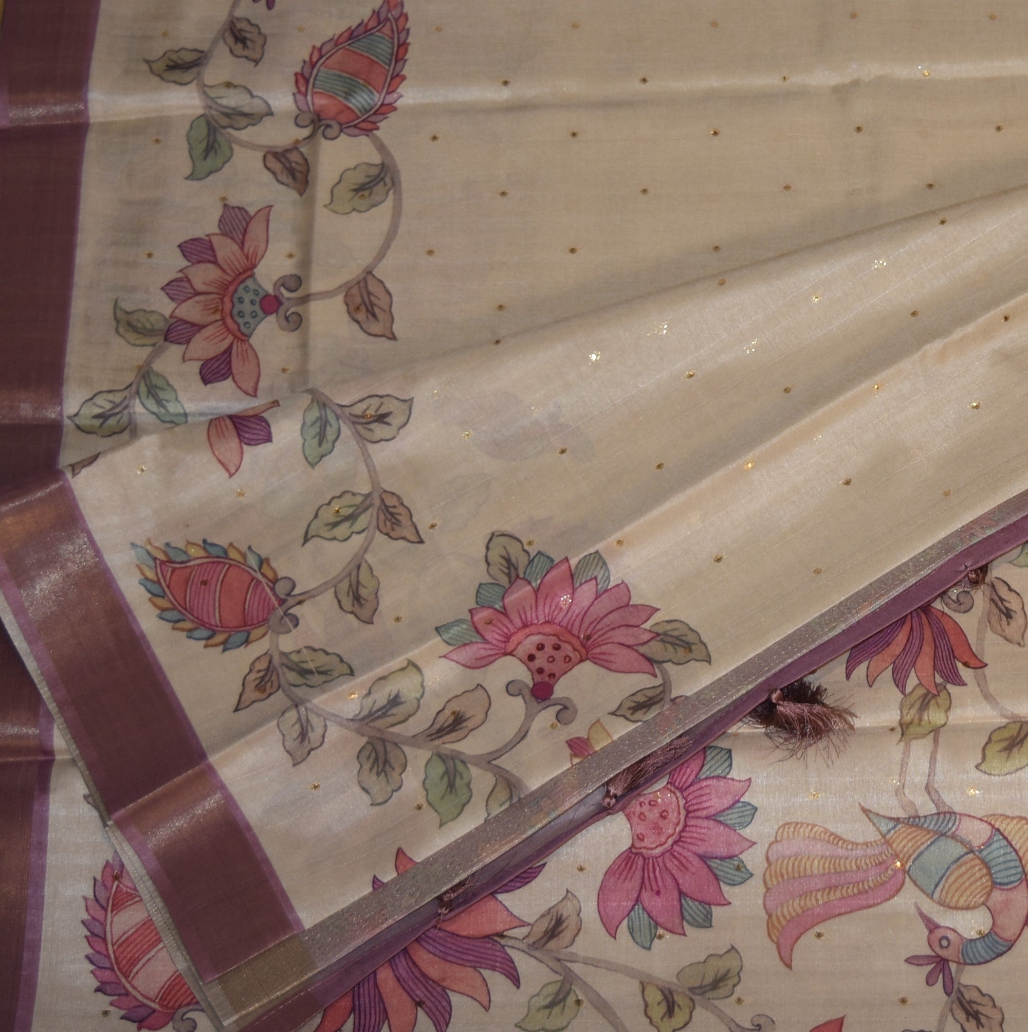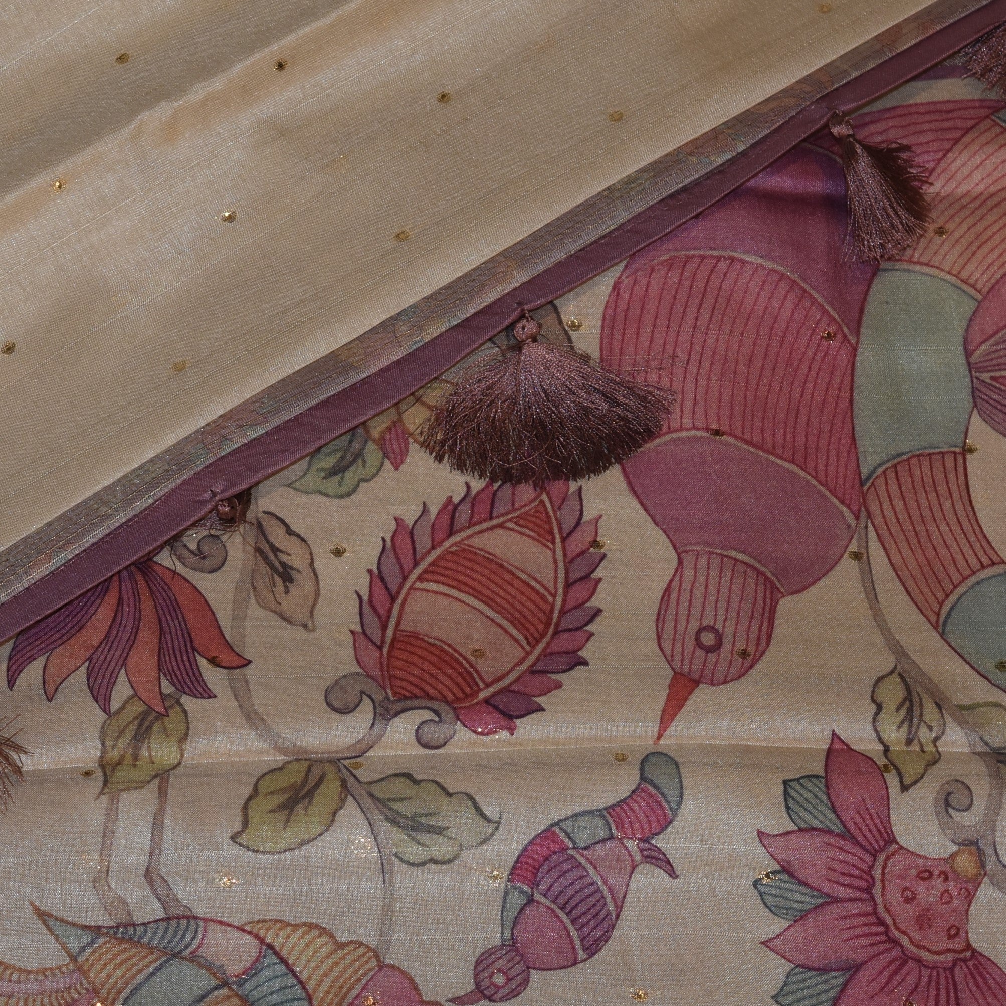 Semi Tussar is a blend fabric that combines tussar silk with other fabrics like silk or cotton.  it retains the natural texture and rich look of tussar silk while being more affordable and easier to maintain.