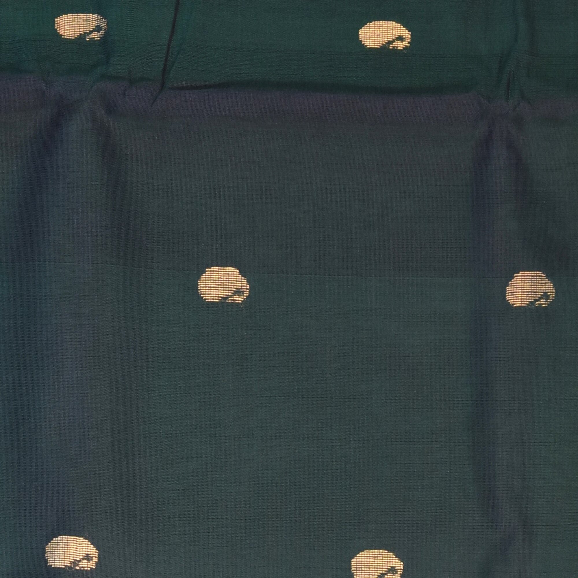 The silk cotton bottle green saree with Jari boarder. Graceful, lightweight, and rich in texture, the silk cotton saree is the perfect fusion of