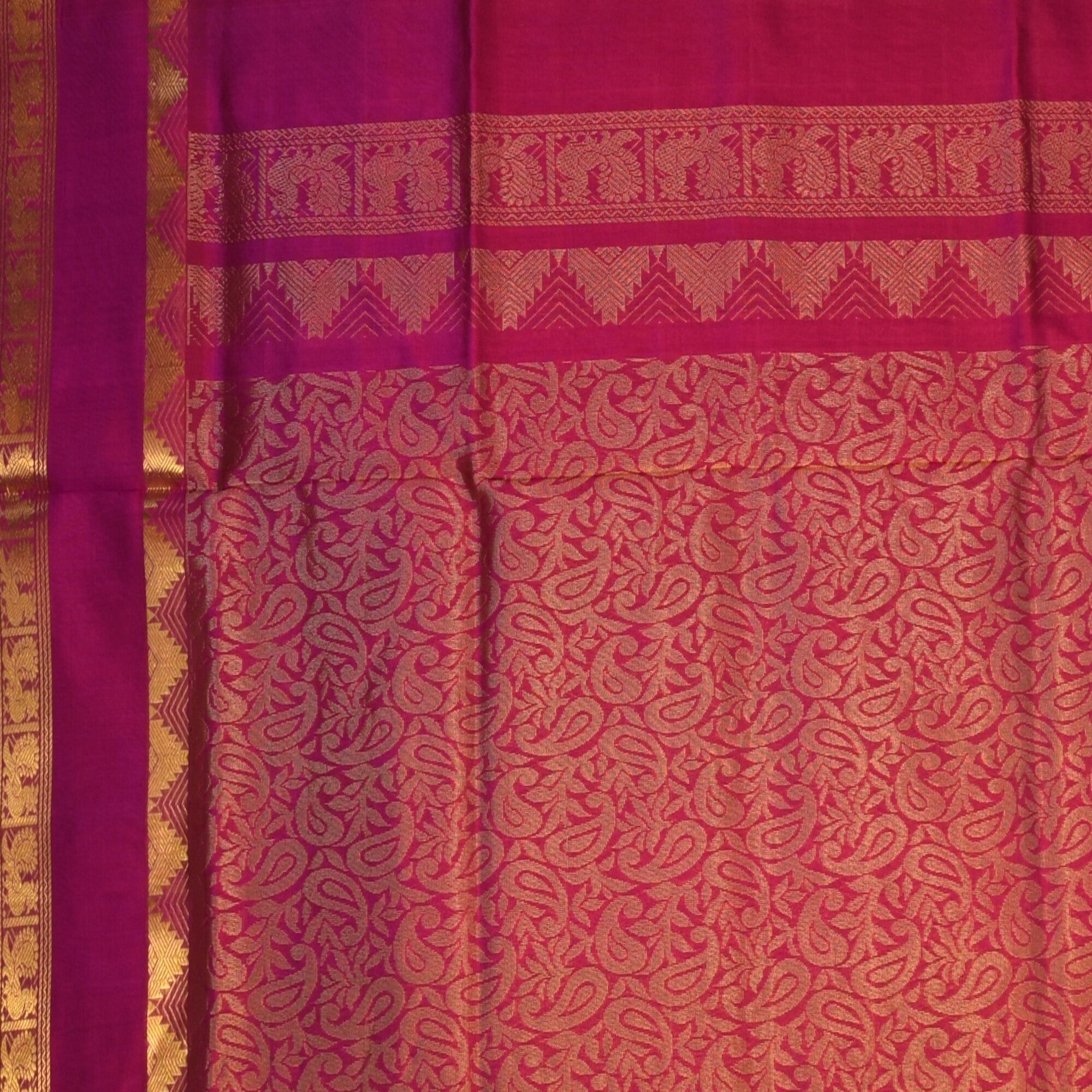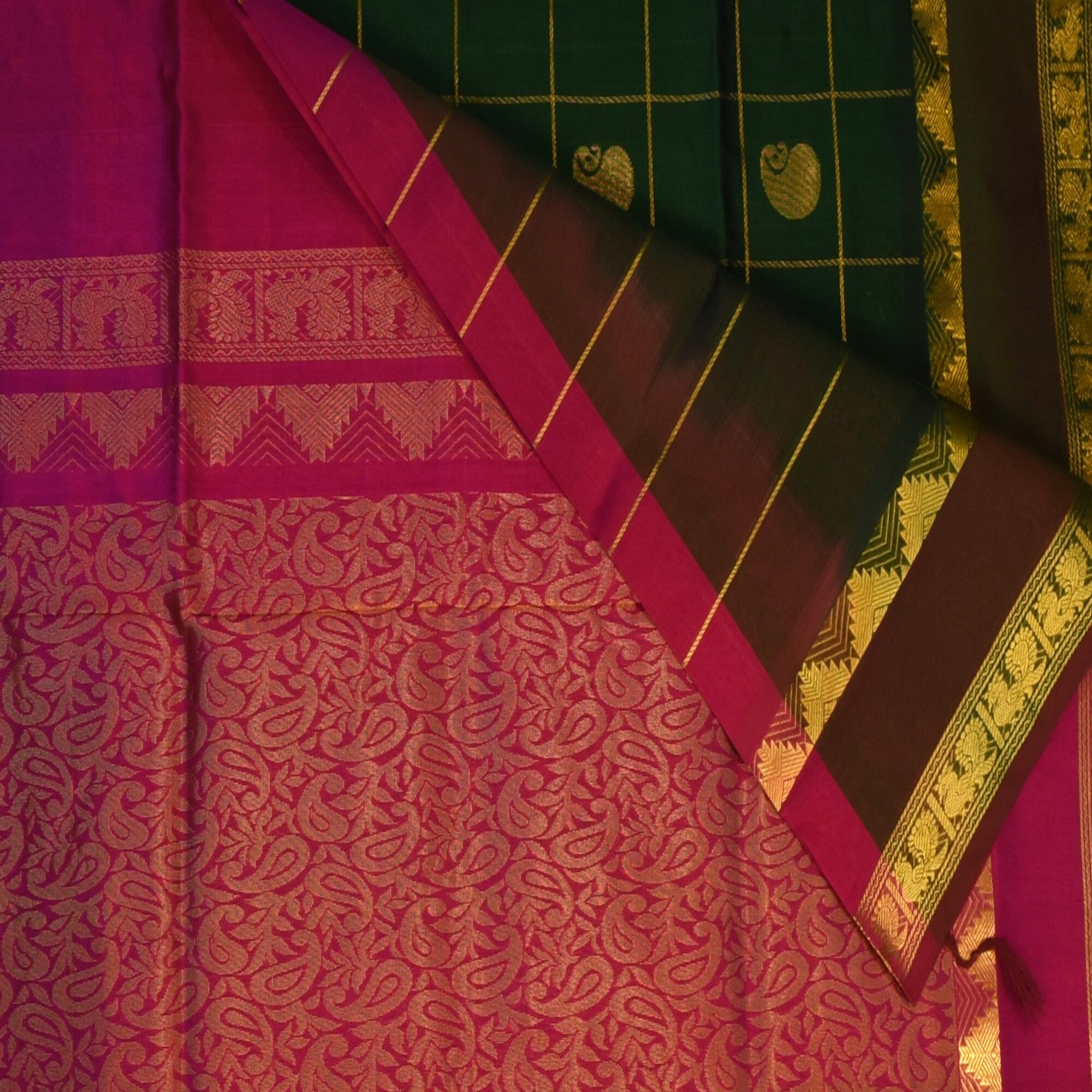 luxury and comfort. Crafted from a blend of pure silk and soft cotton yarns, this saree offers the sheen and elegance of silk along