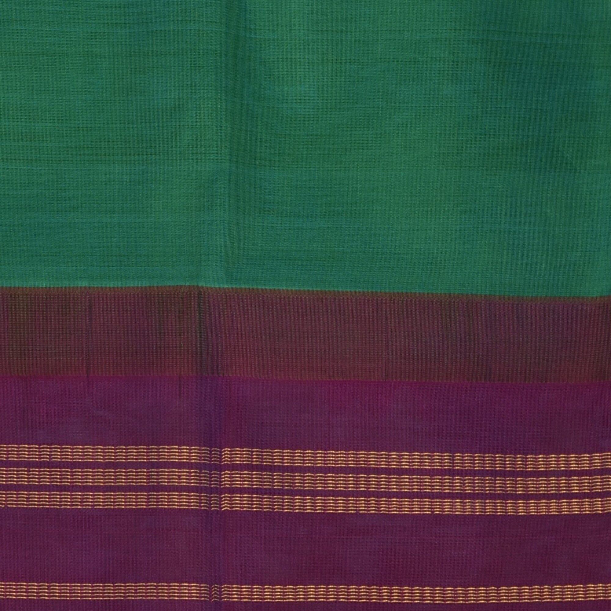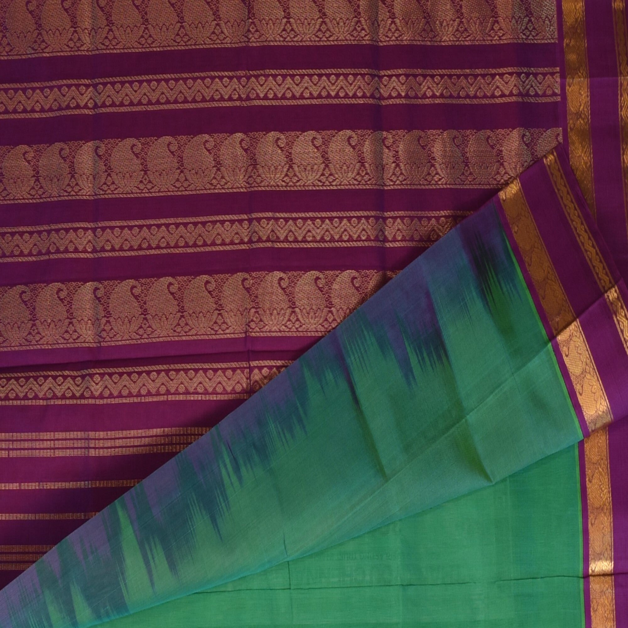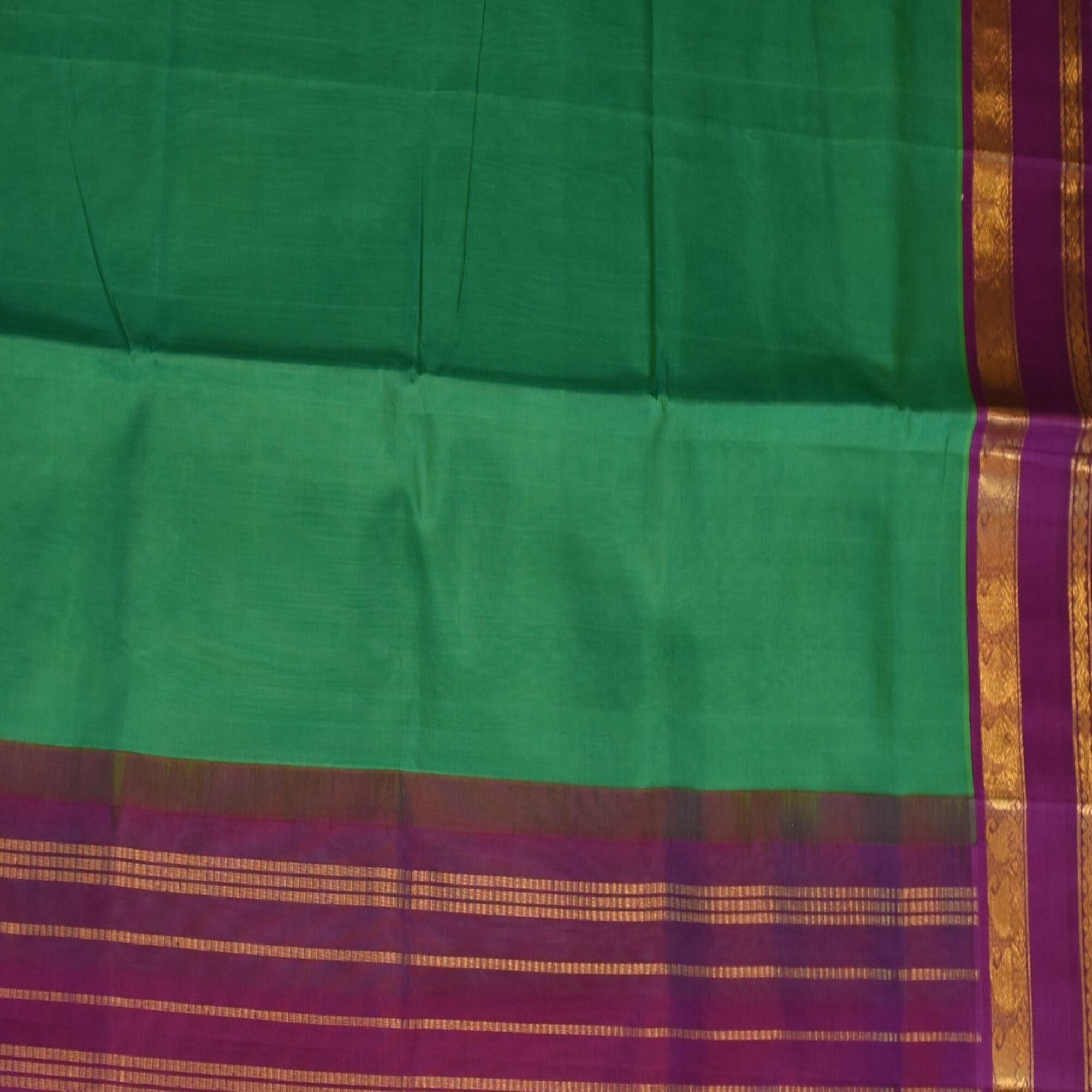 The silk cotton green saree with violet boarder. Graceful, lightweight, and rich in texture, the silk cotton saree is the perfect fusion of