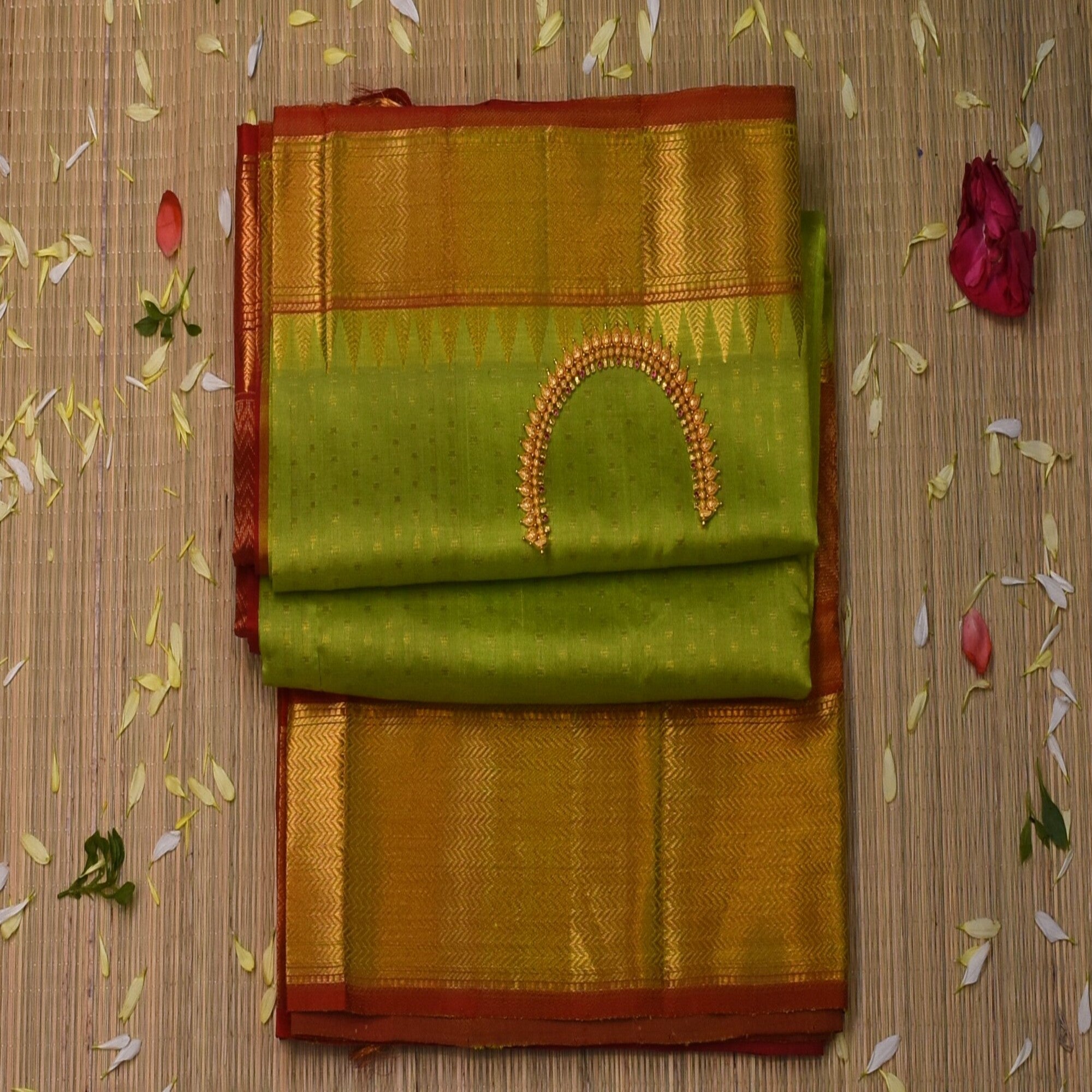 The silk cotton light green saree with Jari boarder. Graceful, lightweight, and rich in texture, the silk cotton saree is the perfect fusion of