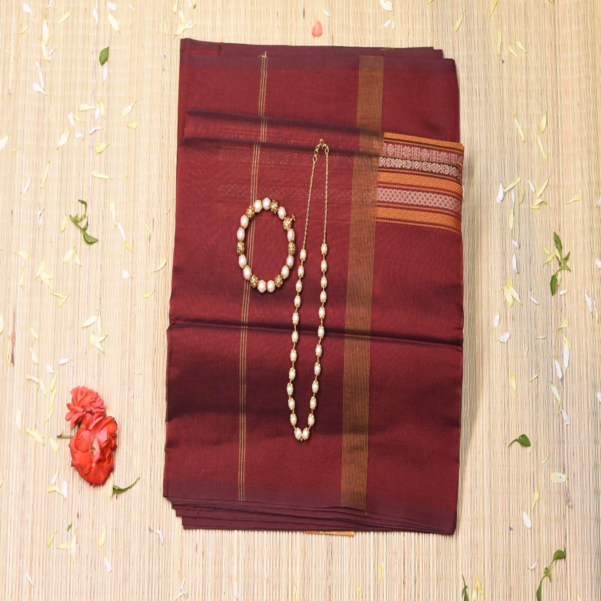 The silk cotton maroon saree with blouse. Graceful, lightweight, and rich in texture, the silk cotton saree is the perfect fusion of