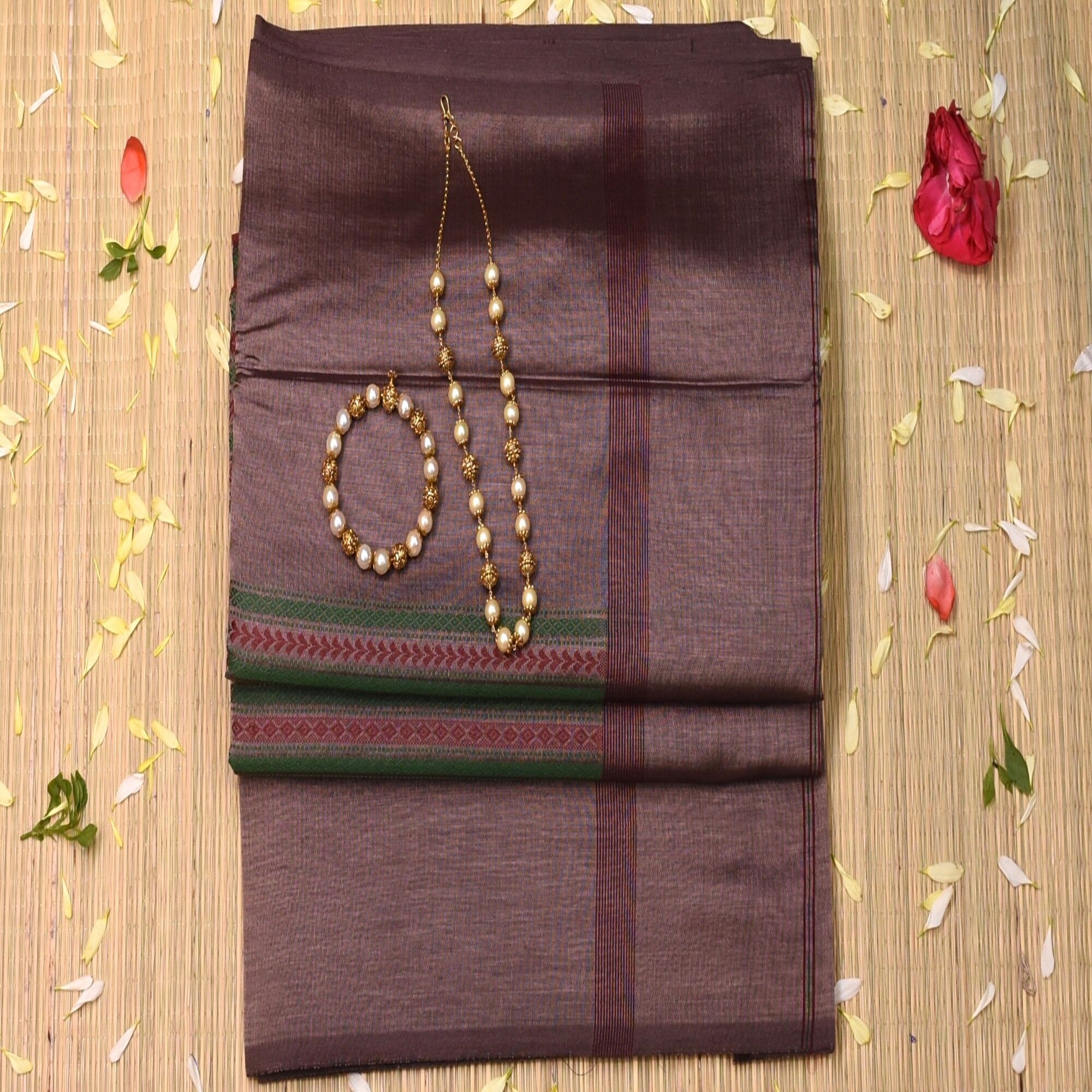 luxury and comfort. Crafted from a blend of pure silk and soft cotton yarns, this saree offers the sheen and elegance of silk along