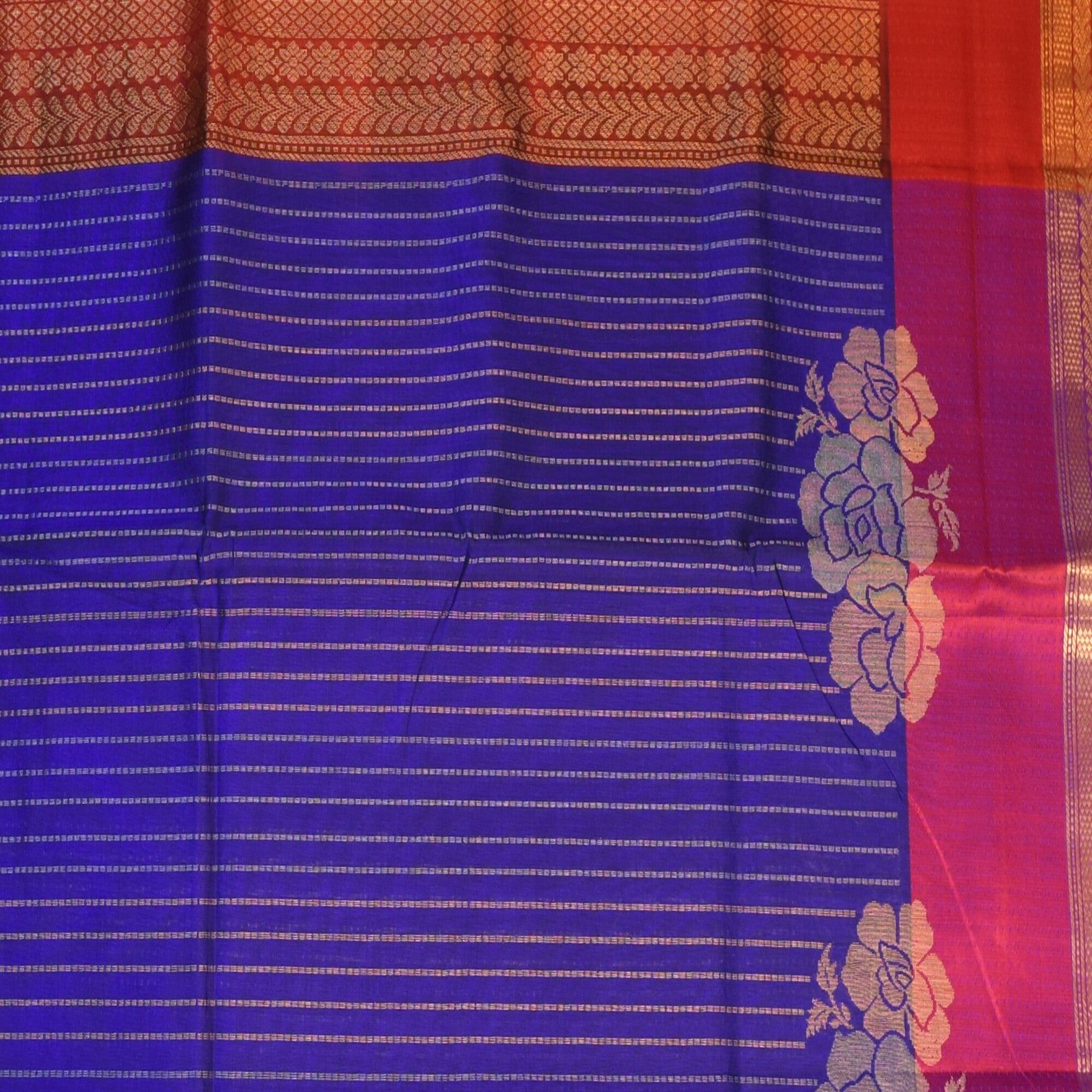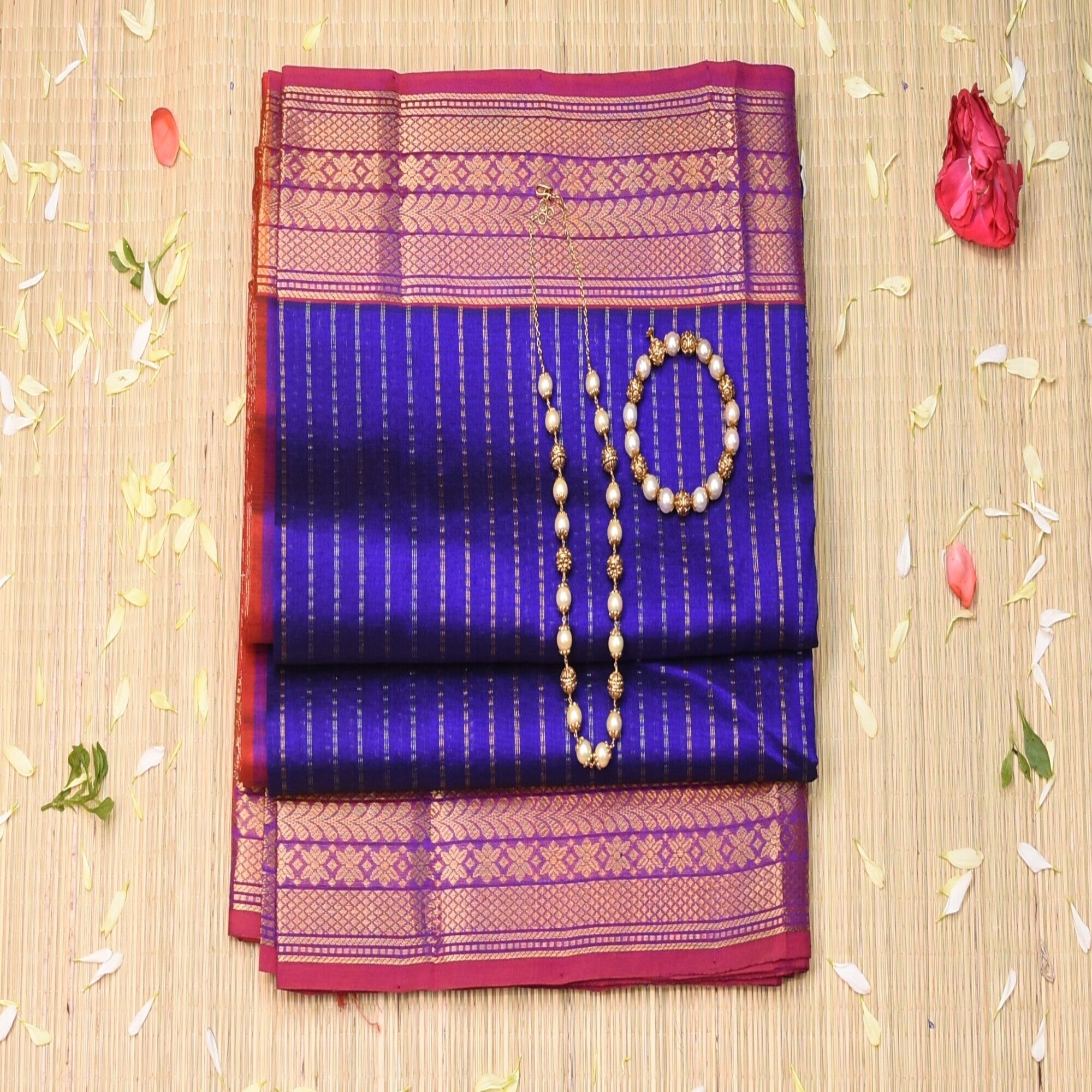 The silk cotton navy blue saree with Jari boarder. Graceful, lightweight, and rich in texture, the silk cotton saree is the perfect fusion of