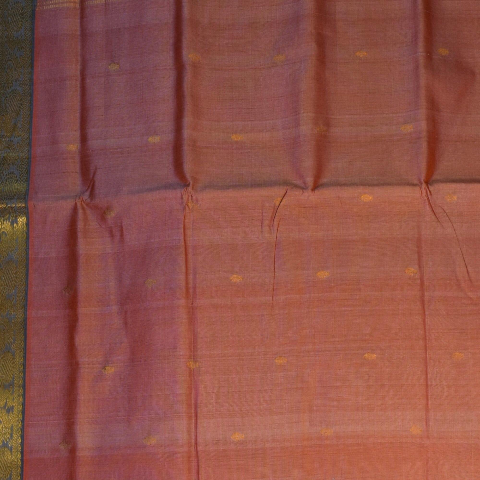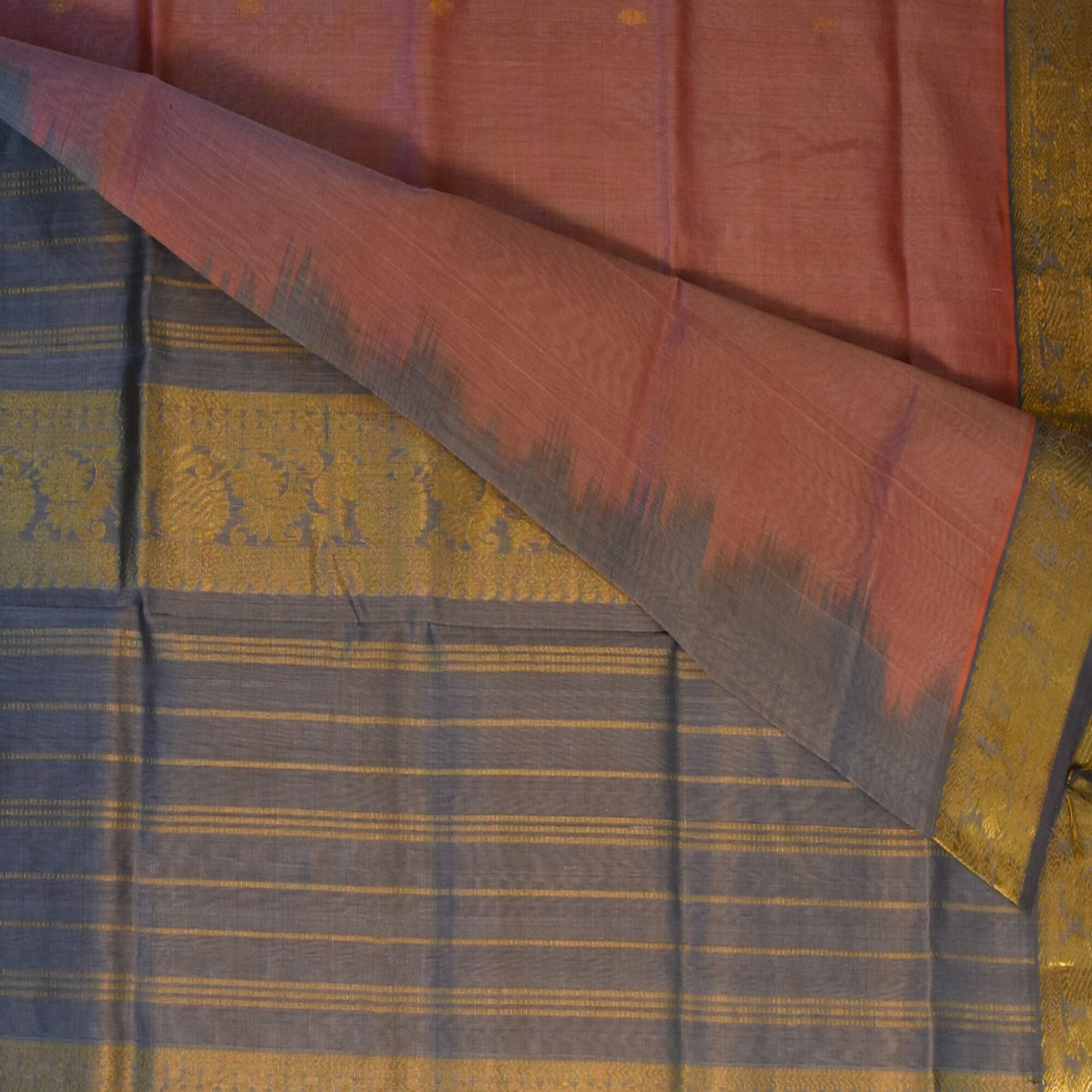 luxury and comfort. Crafted from a blend of pure silk and soft cotton yarns, this saree offers the sheen and elegance of silk along
