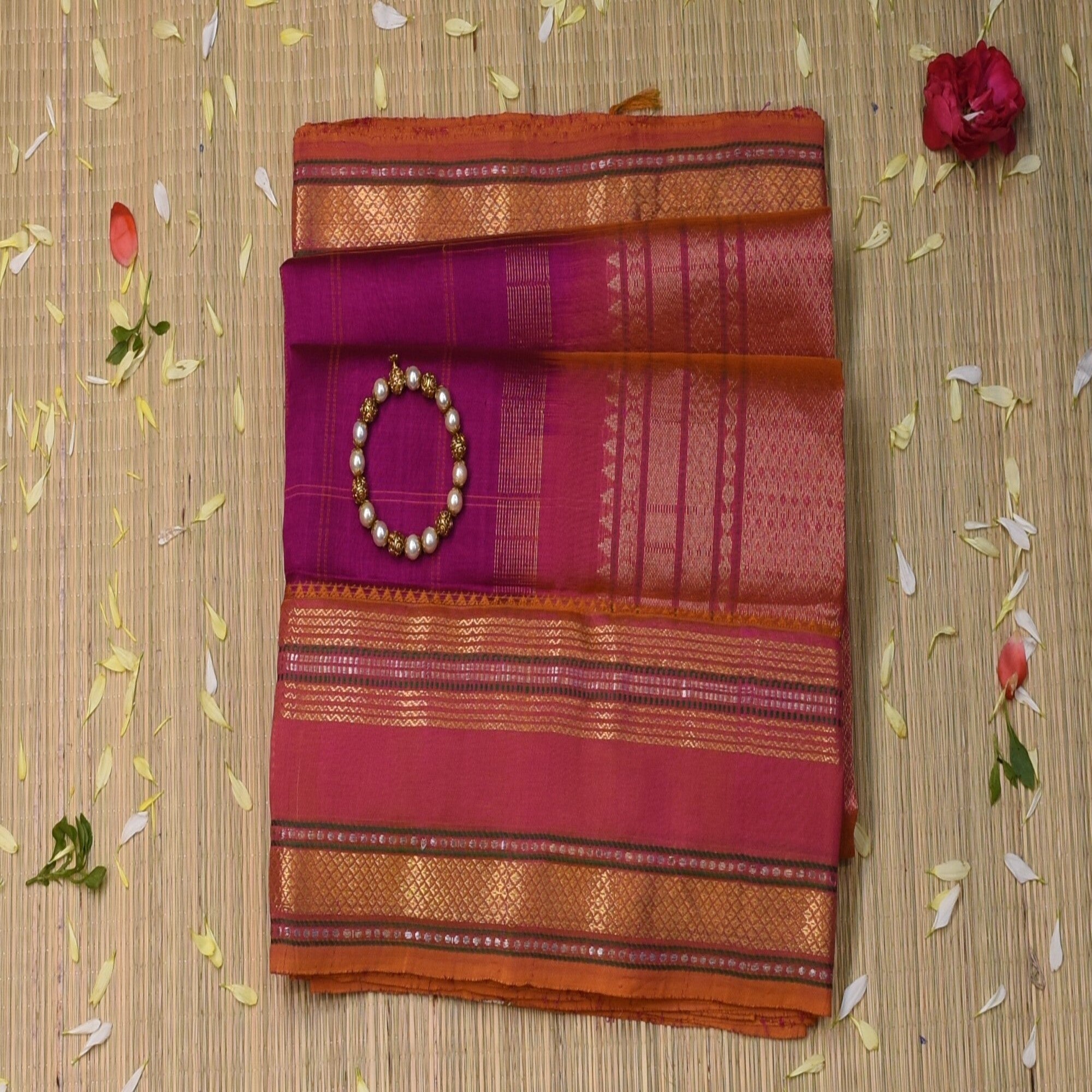 The silk cotton pink saree with Jari boarder. Graceful, lightweight, and rich in texture, the silk cotton saree is the perfect fusion of