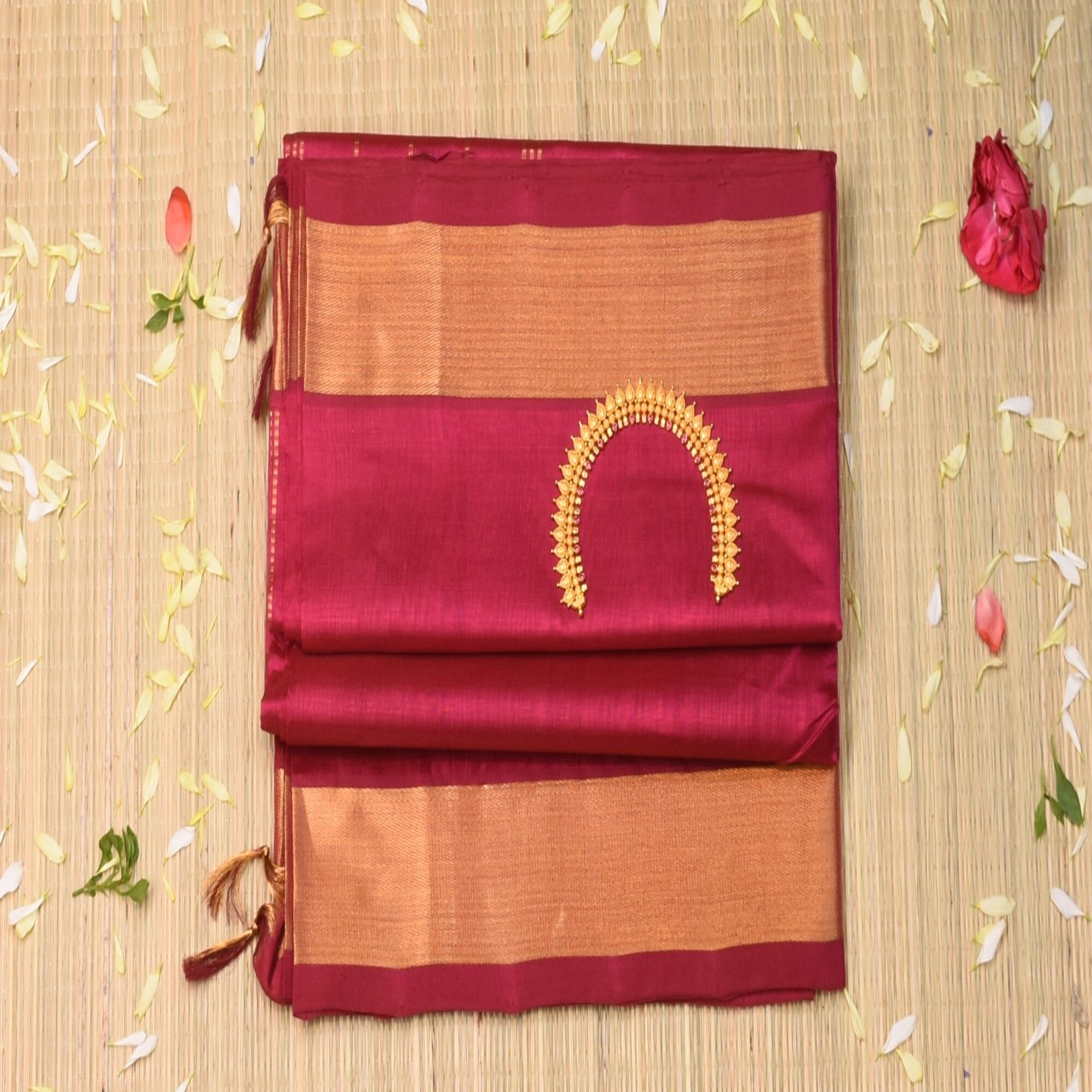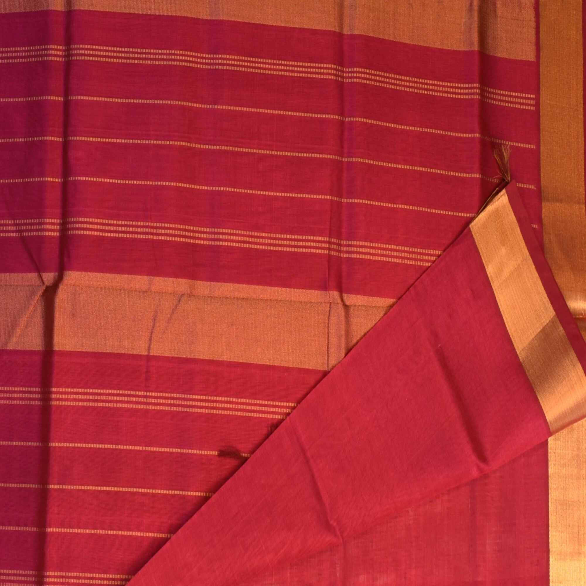 The silk cotton rani pink saree with Jari boarder. Graceful, lightweight, and rich in texture, the silk cotton saree is the perfect fusion of