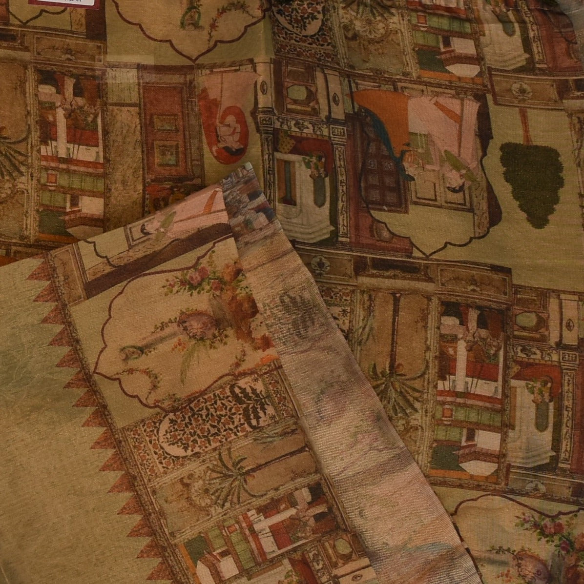 This Tissue semi saree in a golden oak shade exudes grace and sophistication. Designed with intricate traditional motifs, it is perfect for weddings, festive celebrations, and cultural events.