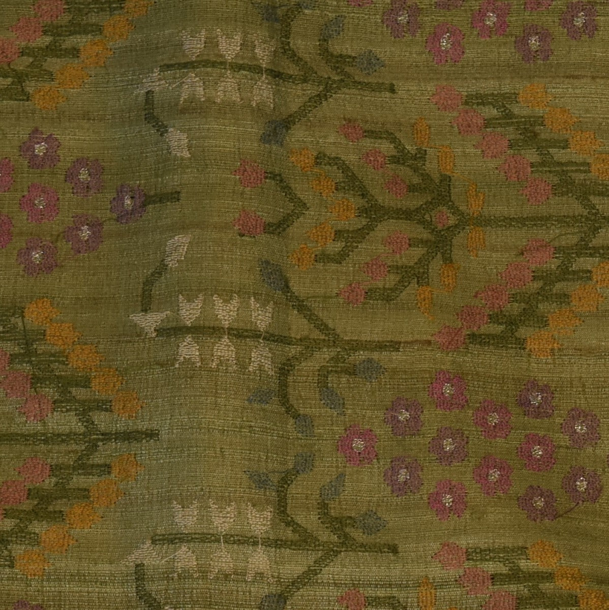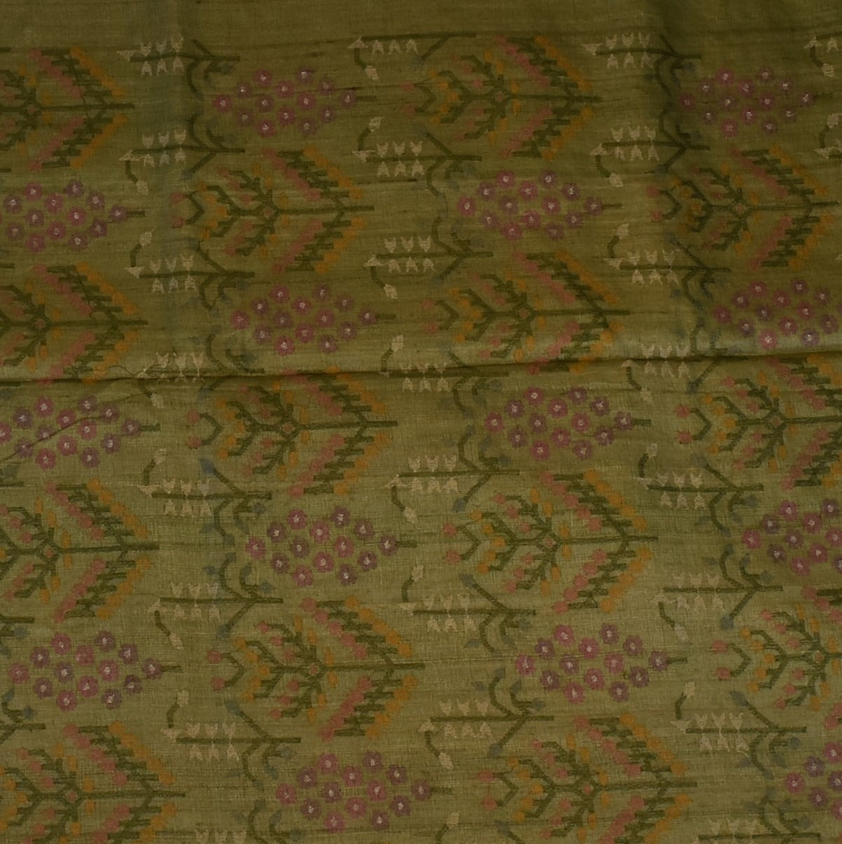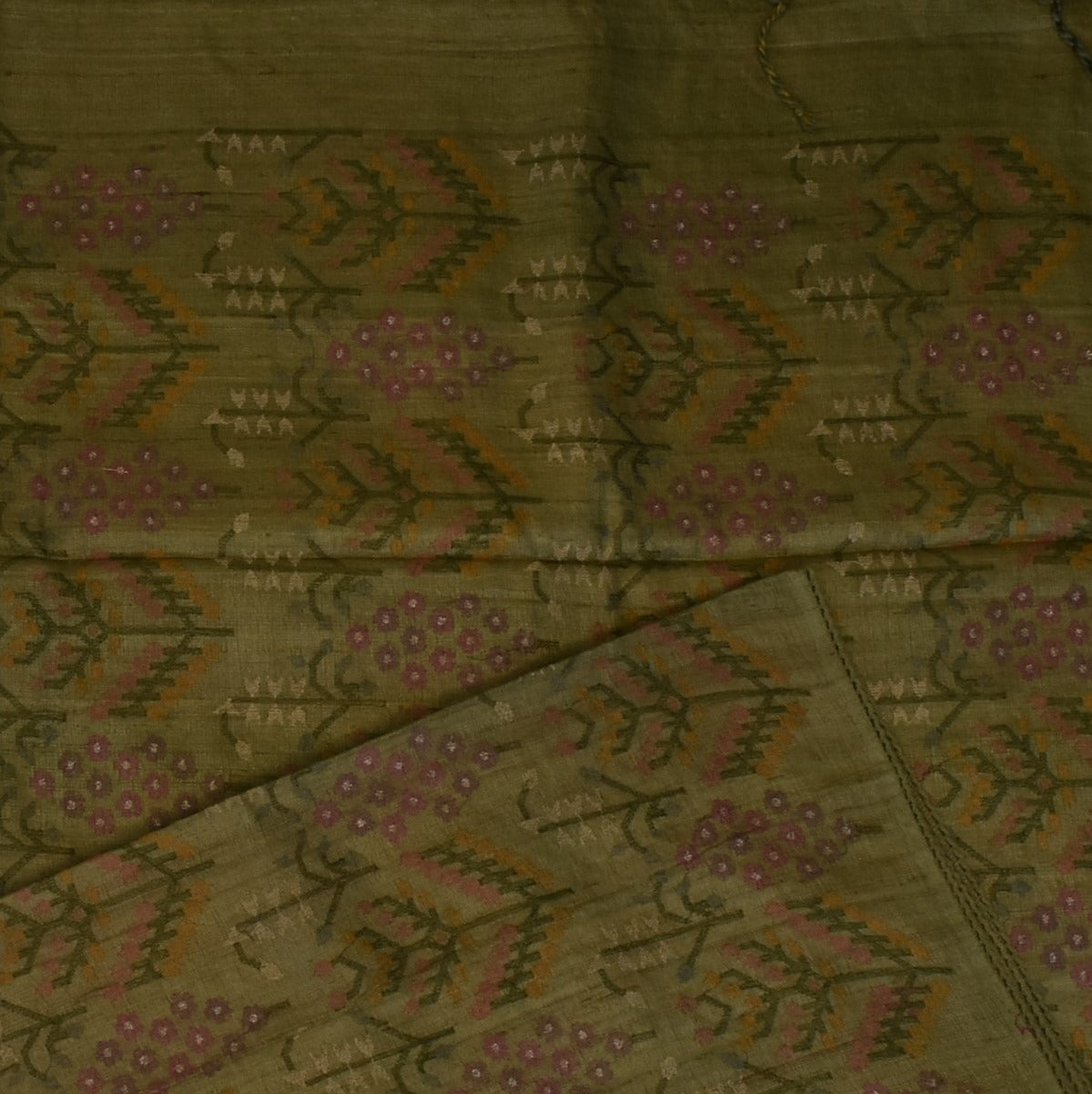 This Tussar Silk saree in a antique olive shade exudes grace and sophistication. Designed with intricate traditional motifs, it is perfect for weddings, festive celebrations, and cultural events.