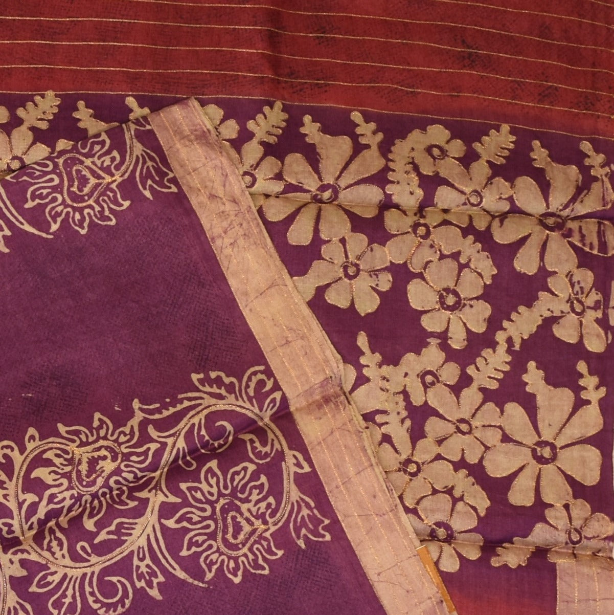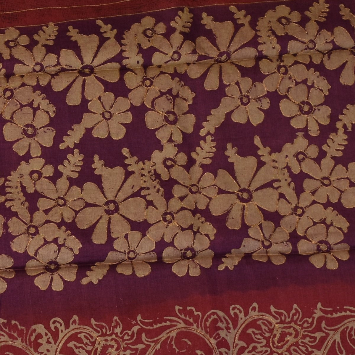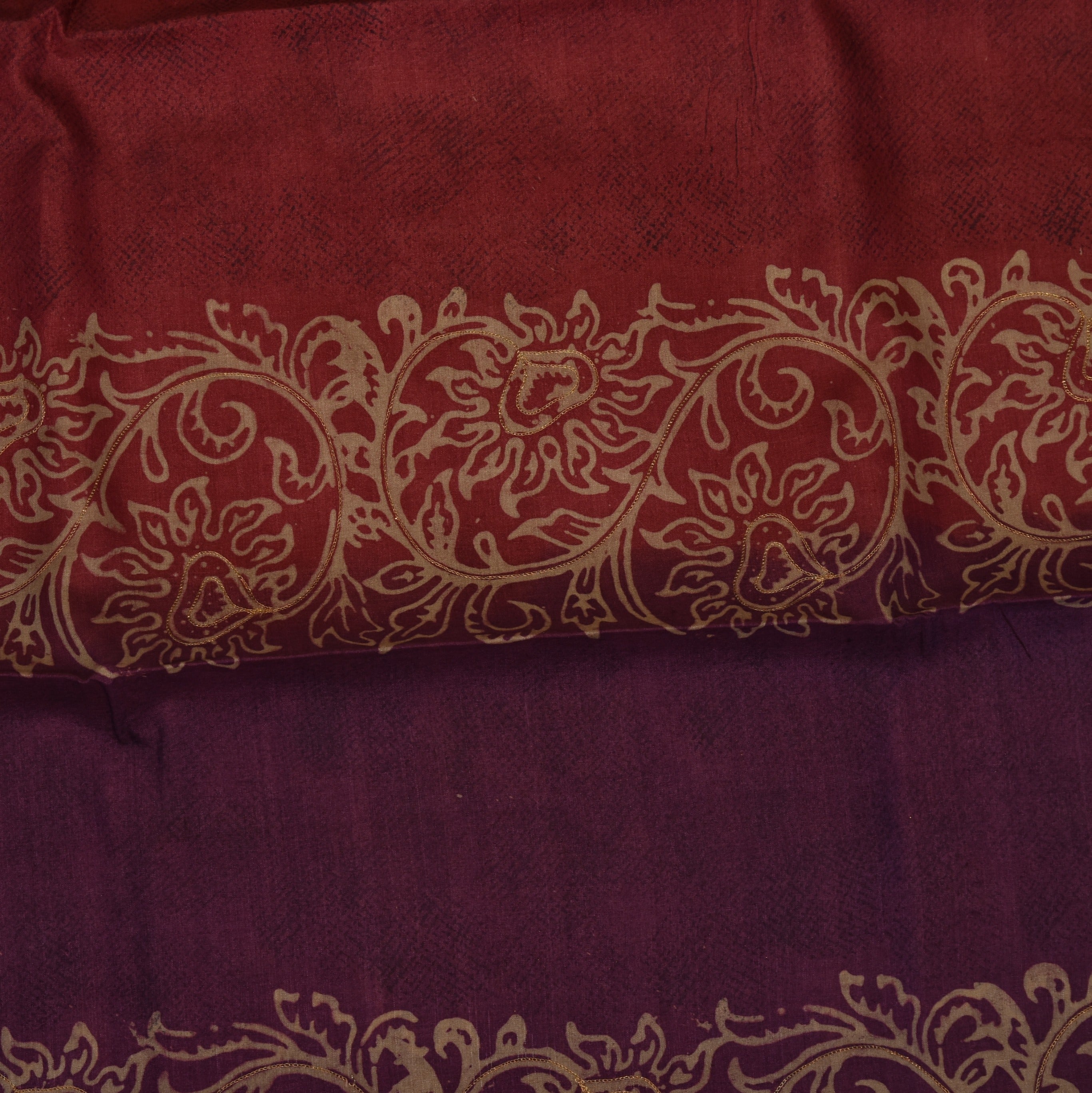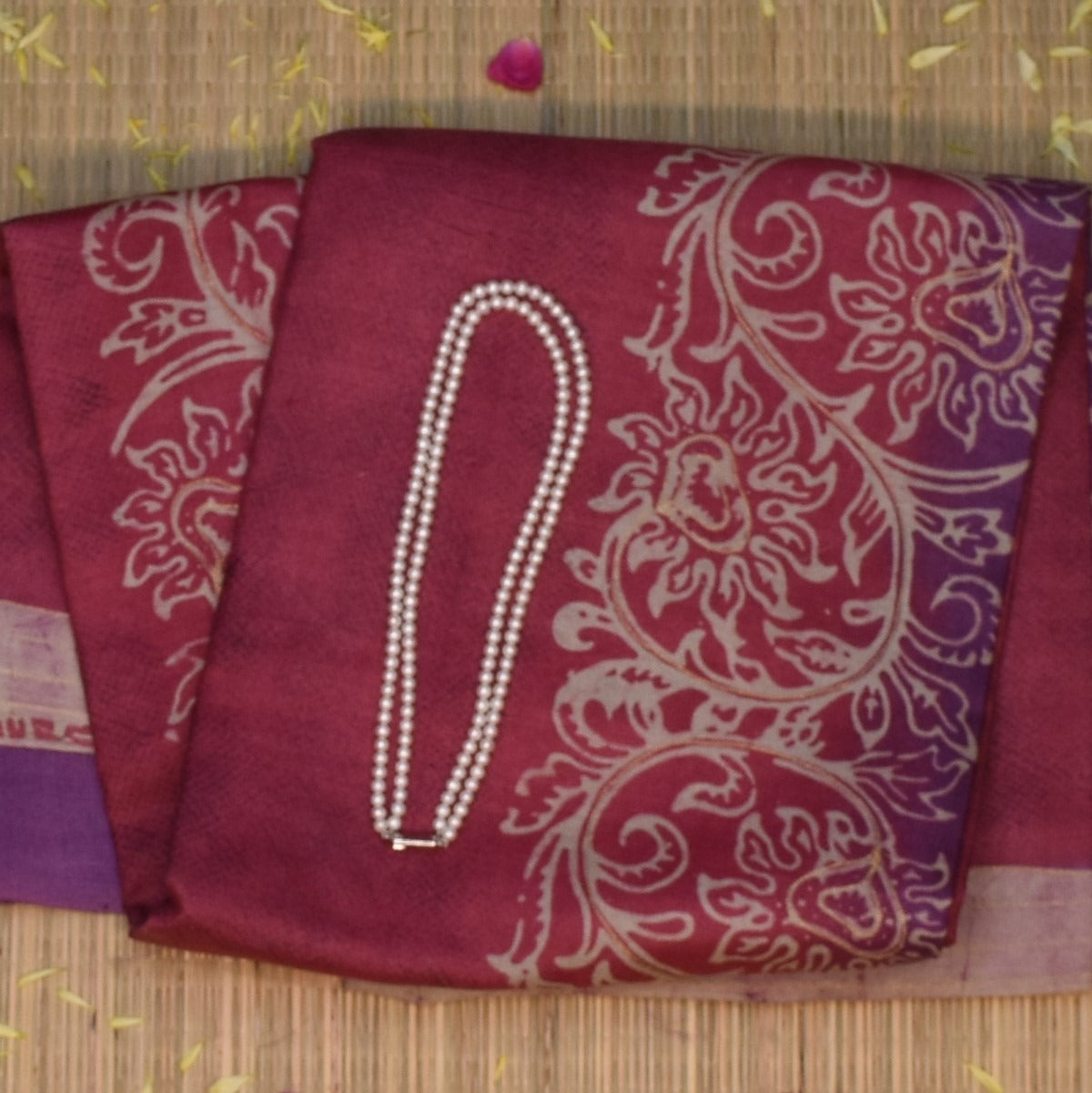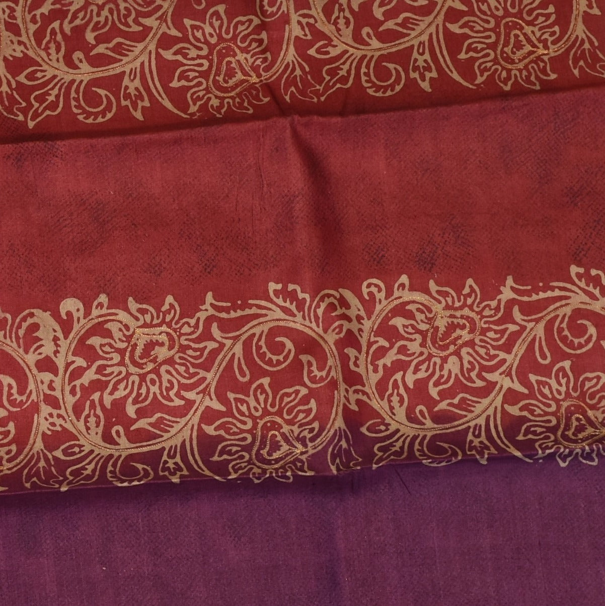 This Tussar Silk saree in a berry red shade exudes grace and sophistication. Designed with intricate traditional motifs, it is perfect for weddings, festive celebrations, and cultural events.