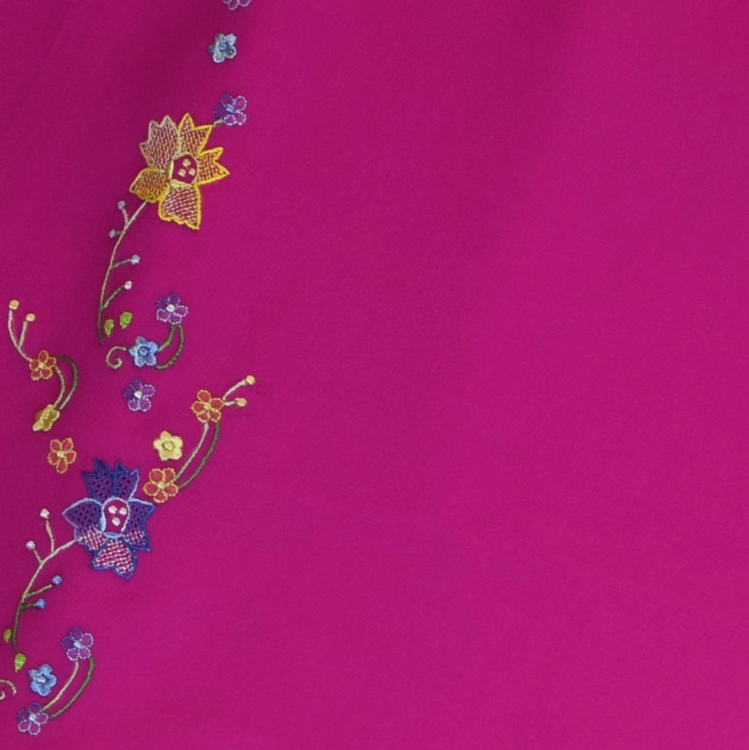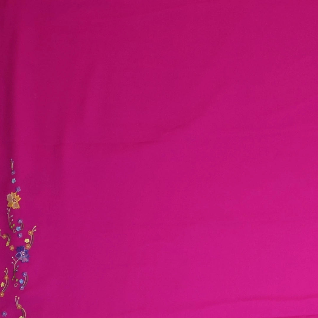 This pure gadwal silk saree in a vivid fuchsia shade features elegant traditional patterns, perfect for graceful appearances and festive flair.
